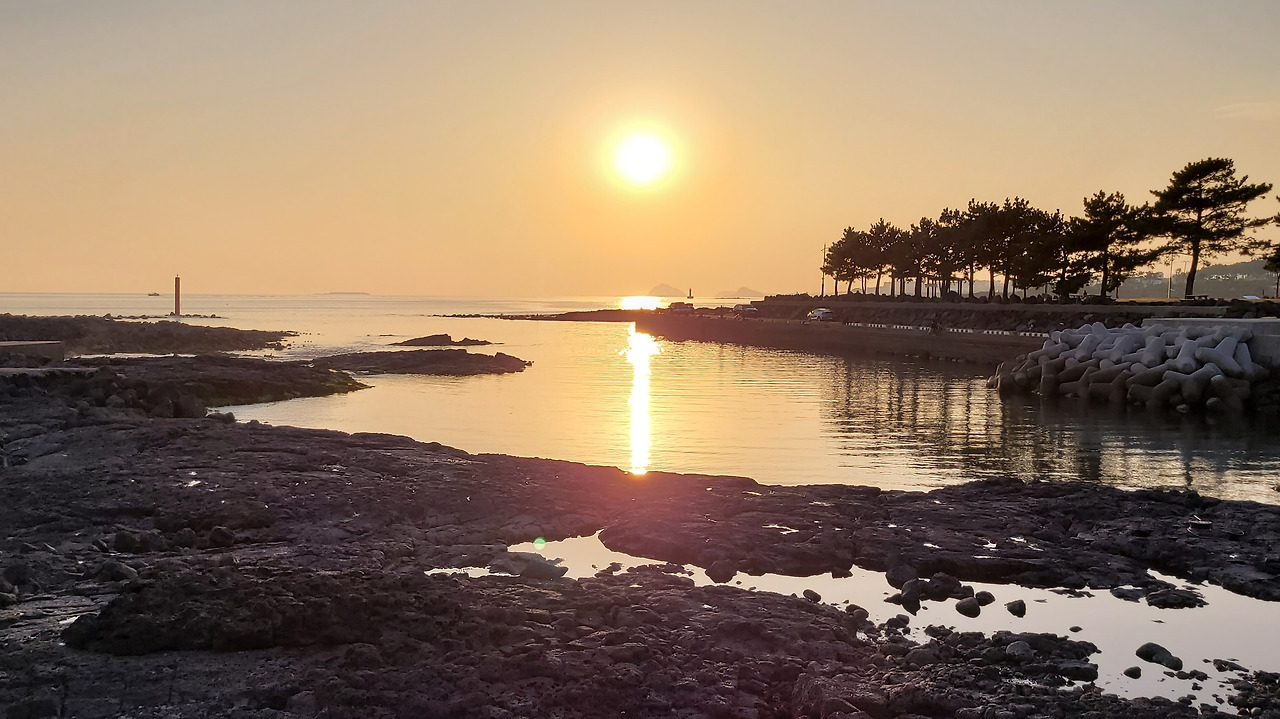 작년 이맘땐 한라산 정상부에 눈이 쌓인 것을 보았는데 오늘은 해 질 무렵이라 바다 쪽에 더 눈이 간다.
