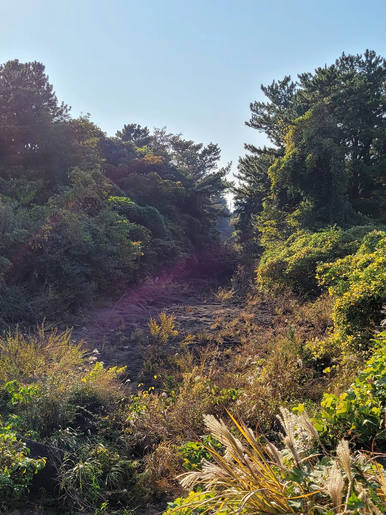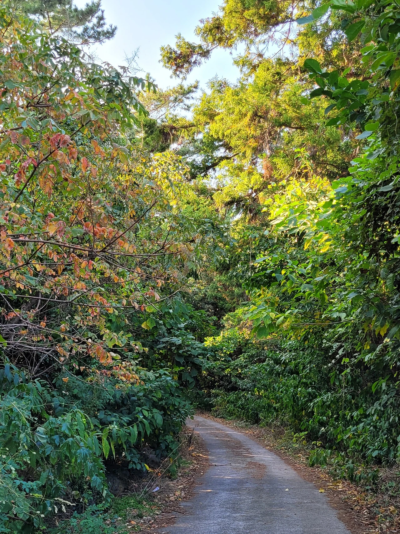 농협 연수원 산책길. 향이 만 리까지 간다는 돈나무, 섬쥐똥나무라 불리기도 하는 우묵사스레피와 까마귀쪽나무 등 상록활엽관목이 우거진 숲길과 억새가 바람에 흔들리고 파도 소리가 귓전을 두드리는 바닷길, 대나무 숲길을 번갈아 걷는다.