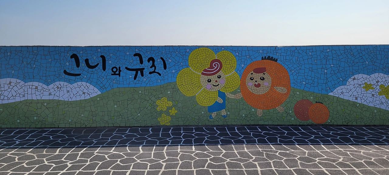가마포구. 가마포구로 들어선다. 세화리의 옛 이름이 가마리다. '또똣'은 '따뜻한'이라는 제주어다. '또똣 노랑 가마리'는 노란 황근의 자생 군락이 있고, 노란 귤이 많이 나는 따뜻한 곳 가마리를 이른다. 가마리는 귤과 황근을 형상화한 '규리와 그니'를 캐릭터로 사용한다. 매년 축제도 연다. 코로나로 멈췄지만.