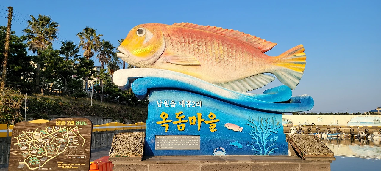 옥돔 마을. 태흥2리포구는 옥돔 마을이다. 선창가 위판장에서 첫 번째, 둘째, 넷째 주 일요일만 빼고 매일 오후 1시에 옥돔 경매가 열린다. 보통 수산물 경매는 새벽녘에 열리는데 이곳에서는 대낮에 볼 수 있다. 옥돔을 낙찰받은 상인들로부터 살 수도 있다.