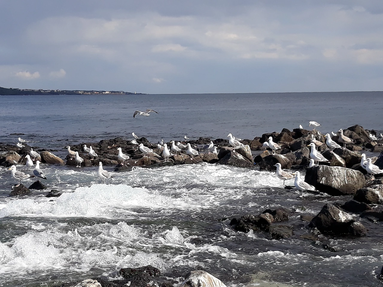 바다목장. 신흥1리 사무소를 지나 일주동로를 건넌다. 다시 해안로를 만난다. 신흥포구부터 해안도로는 남원포구까지 이어진다. 해안도로변에 바다를 바라보고 대형 유통 업체 ○○ 광어 바다목장이란 안내판과 함께 큼직한 빗돌에 ○○수산, □□수산 등의 상호가 새겨진 대규모 양식장이 연이어 나타난다. 양식장 주변에는 어김없이 물새들이 모여든다.