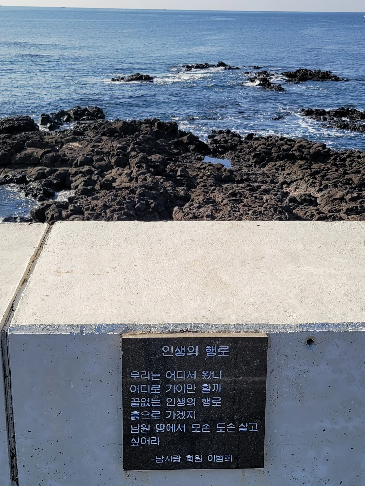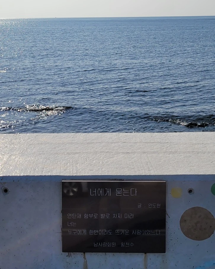 이듬해 늦가을. 절벽 위에 앉아 바다를 바라보던 남편은 한 떨기 연 자주색 꽃을 발견한다. 바위틈을 비집고 나와 웃고 있다. 자세히 들여다보니 아내와 아이의 얼굴이 보여 이 꽃을 해국이라 부르게 된다.