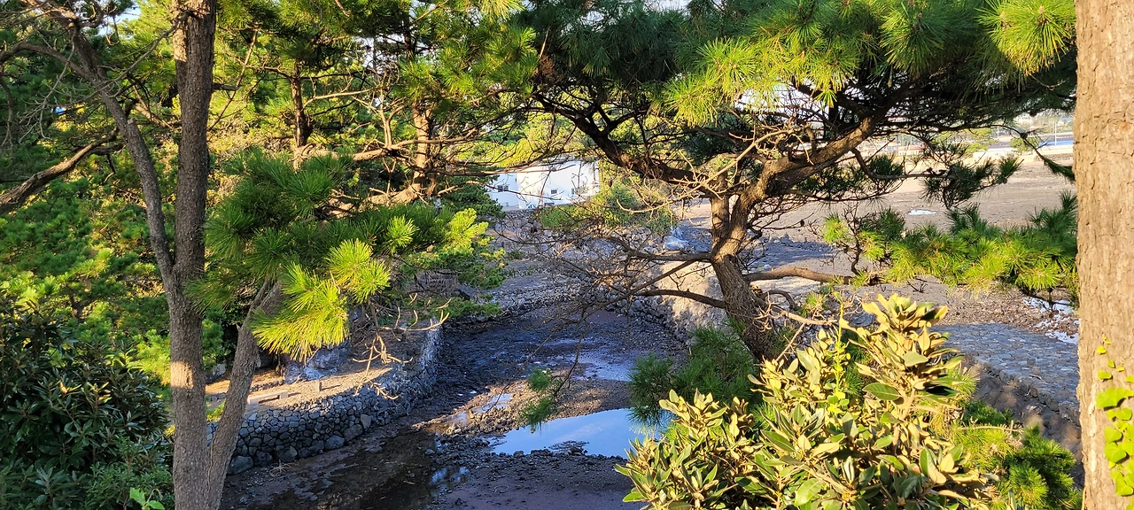 원담. 올레를 걷다 보면 오름만큼이나 많이 볼 수 있는 것이 바닷속 돌담, 원담이다.