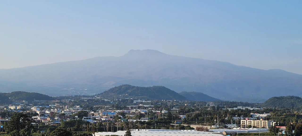 예촌망 오름 기슭에서 본 한라산돌아서니 한라산이 보인다.