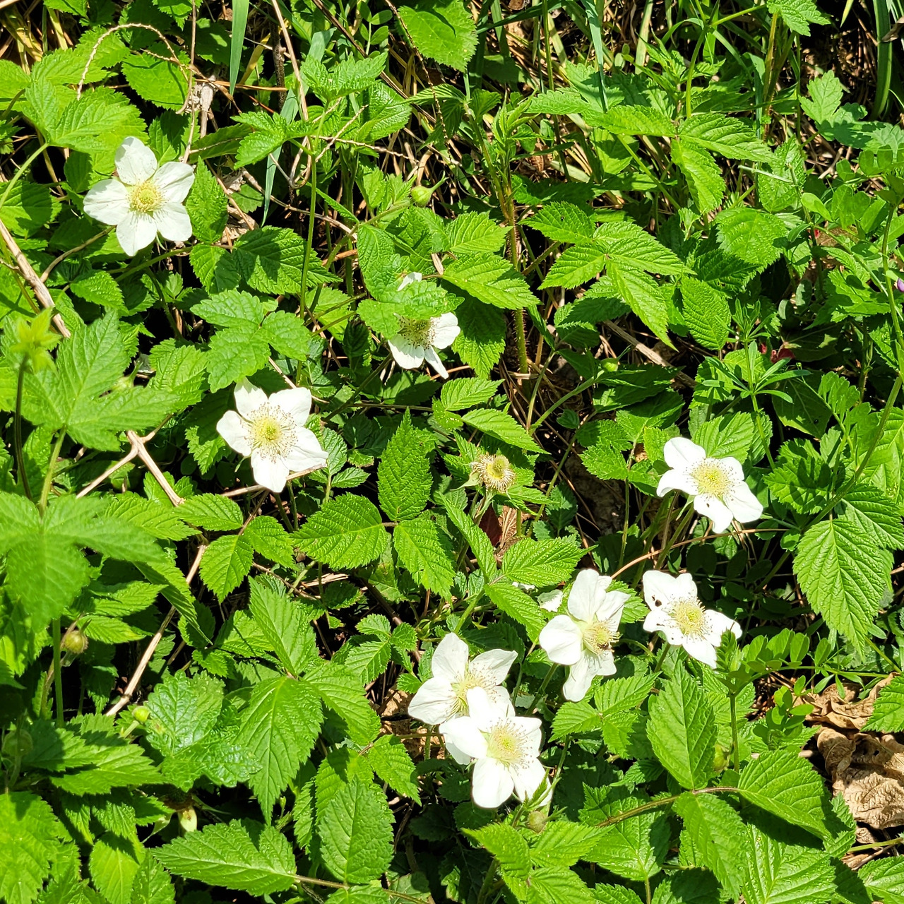 왼쪽 위에서부터 시계침 도는 방향으로 살갈퀴, 장딸기, 두껑별꽃, 금창초(봄 풍경)