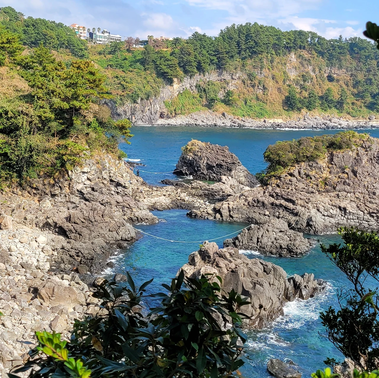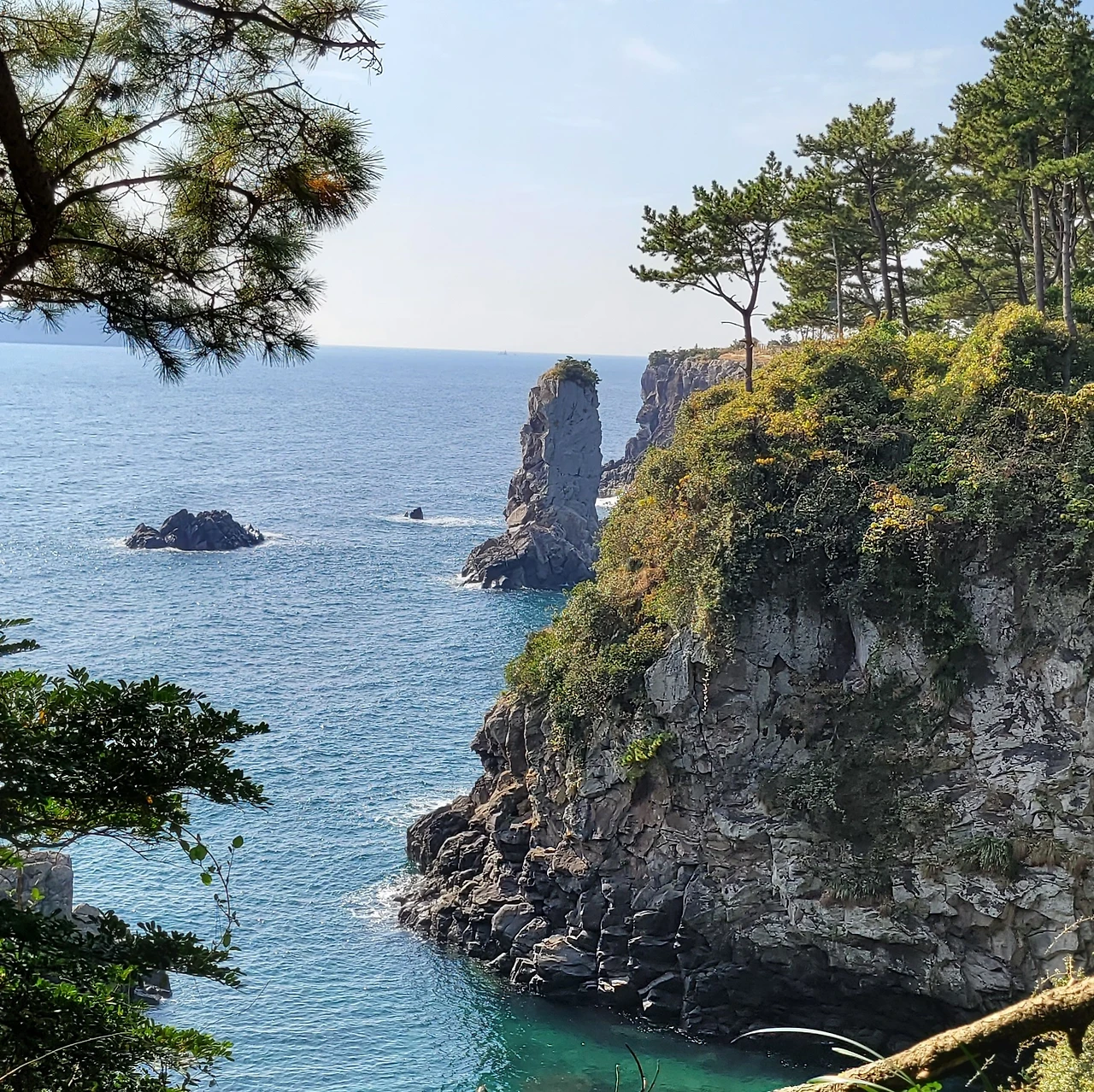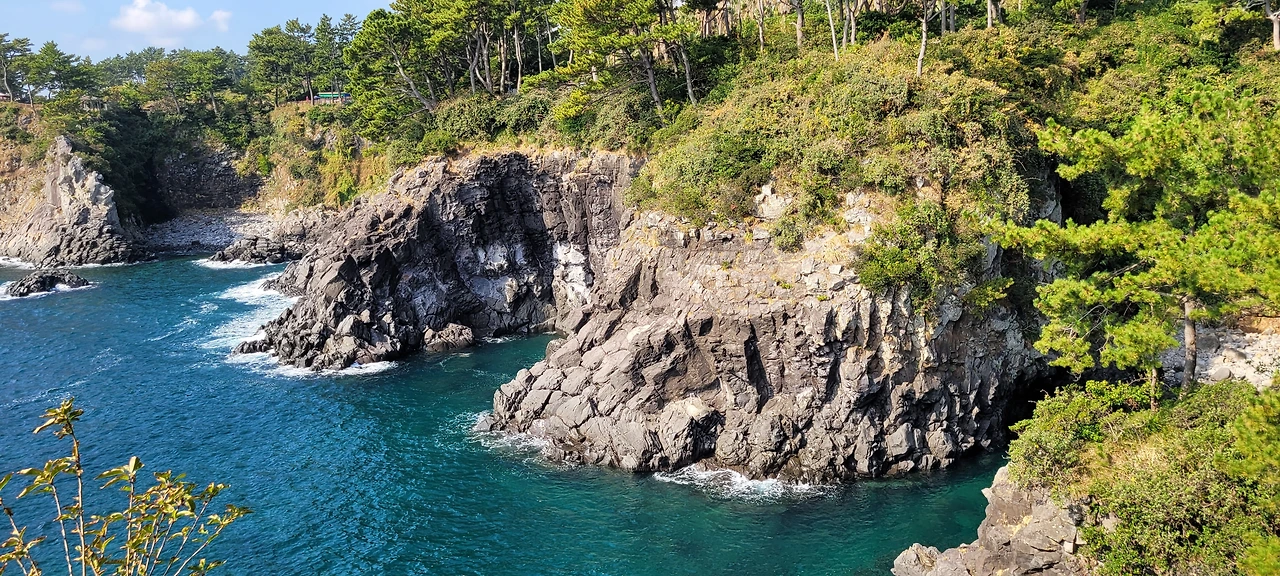 옥색 바다, 깎아지른 절벽, 모자 쓴 듯한 아열대성 수목, 제주도만의 풍경에 심취해 느릿느릿 걷는다.