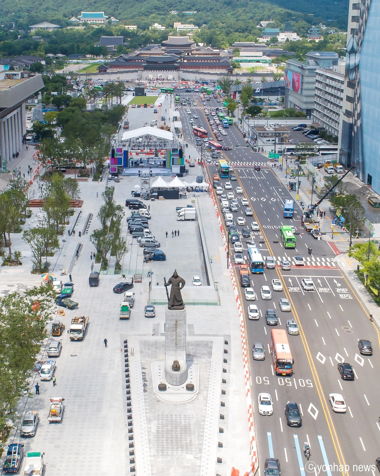 그러나 2008년 5월 27일 착공에 들어가 2009년 8월 1일에 개장한 광화문 광장은 세종대로 중앙에 섬처럼 떠있는 '거대한 중앙분리대'라는 비판을 받는다. 박원순 시장은 이를 전격 수용하고 재조성을 시작한다. 광장 조성 계획 초기부터 승효상과 유홍준이 제안한 (광장을 세종문화회관과 정부청사 쪽으로 붙이는) 안이 채택되어 2022년 8월 재개장하였다.
