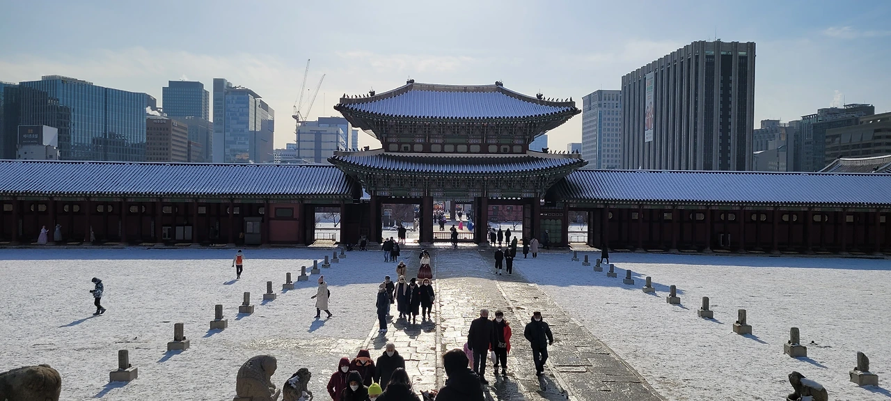근정전 월대에서 본 근정문과 근정전 일곽