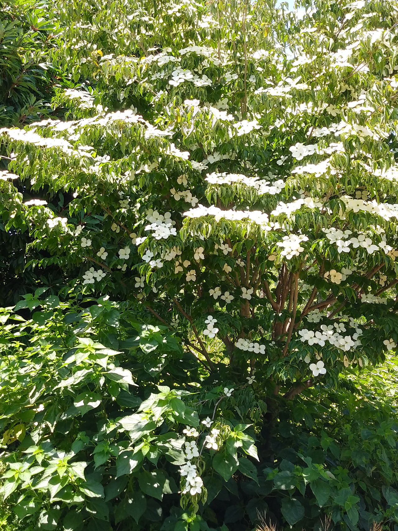 산딸나무. 十 자 모양을 한 여러 개의 흰색 꽃이 꽃대 끝에 모여서 달려 있다. 예수님이 이 나무에서 운명하였다고 하여 성스러운 나무로 취급되어 기독교인들의 사랑을 받는다. 원산지는 한국, 일본, 중국 등지며 층층나무과의 낙엽 활엽 교목이다. 꽃말은 '희생'이다.