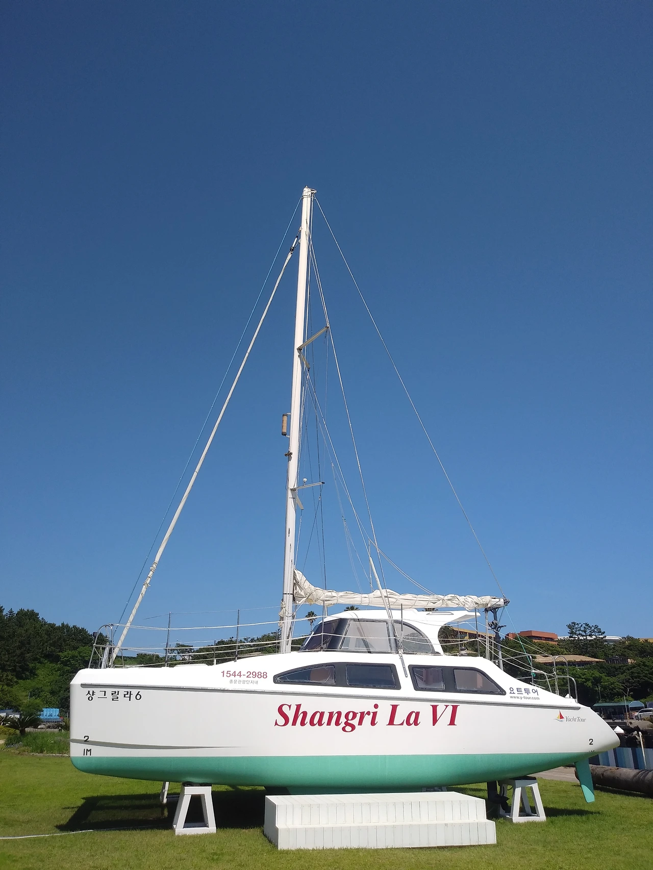 요트투어 싱그릴라를 지나 언덕으로 올라간다. 퍼시픽 리솜 언덕에서 앞으로 이어질 올레, 예래해안을 조망한다.