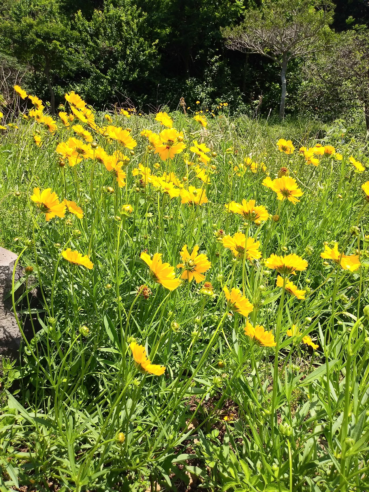 왼쪽 위로부터 큰금계국, 노랑꽃창포, 약모밀, 염주