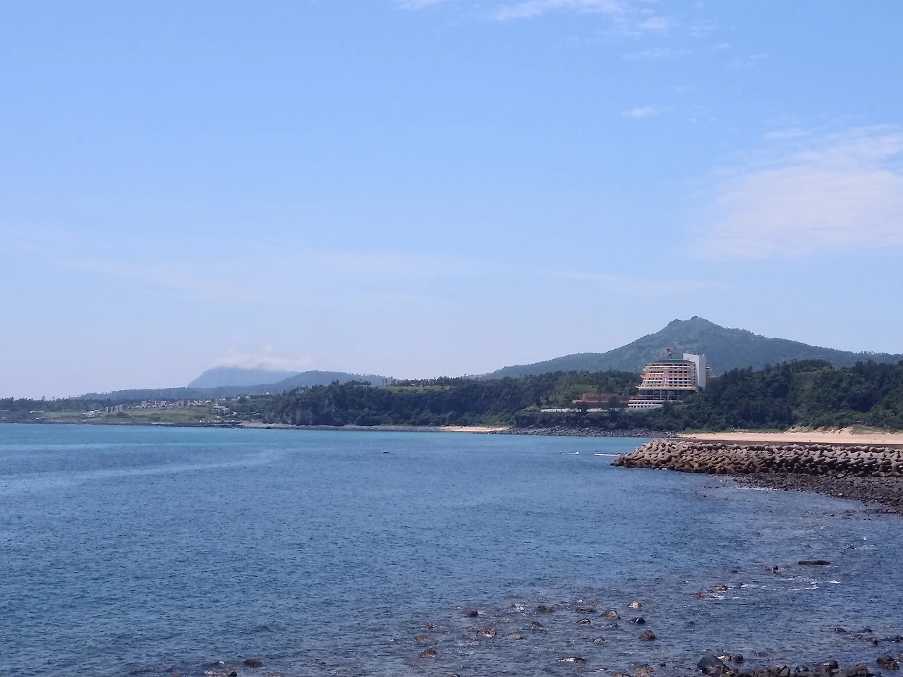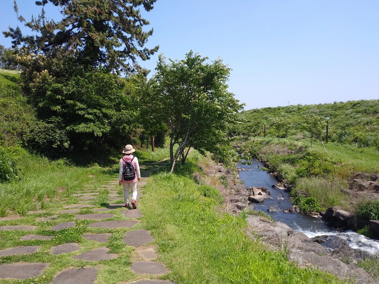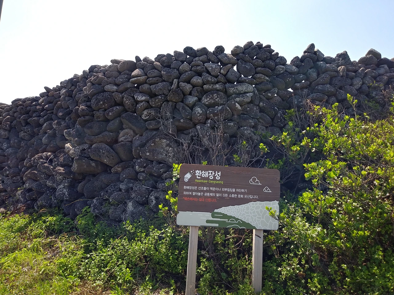 다시 대왕수천을 따라 느릿느릿 걸어 예래해안로에 닿는다. 뒤로 돌아보면 독특한 모습의 군산이 내려다보고 있고 하예 환해장성이 시작된다.