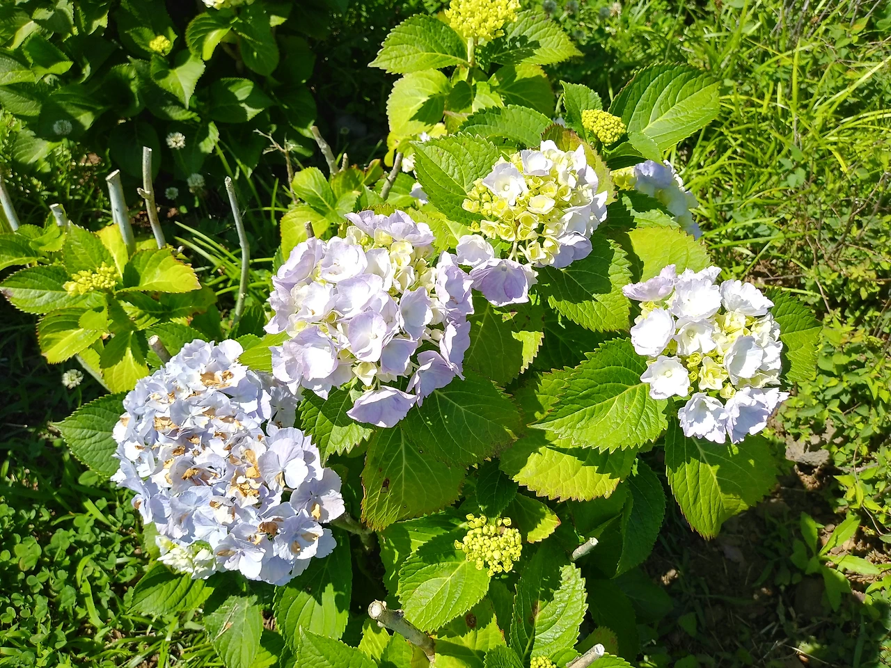 위 왼쪽부터 시계방향으로 수국, 일본조팝나무, 개망초, 괭이밥