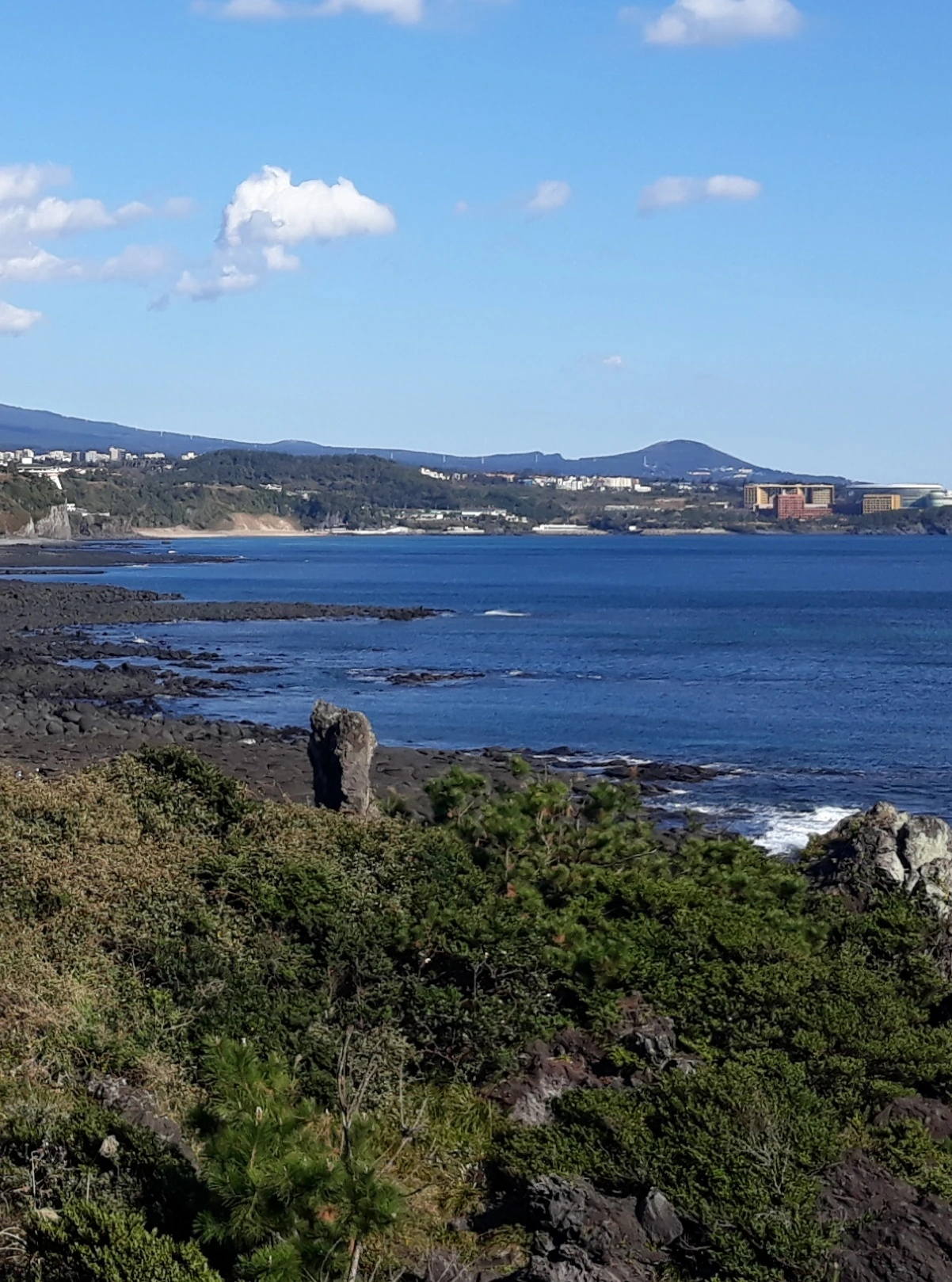 대포주상절리대 산책로에서 바라보는 군산과 색달해수욕장