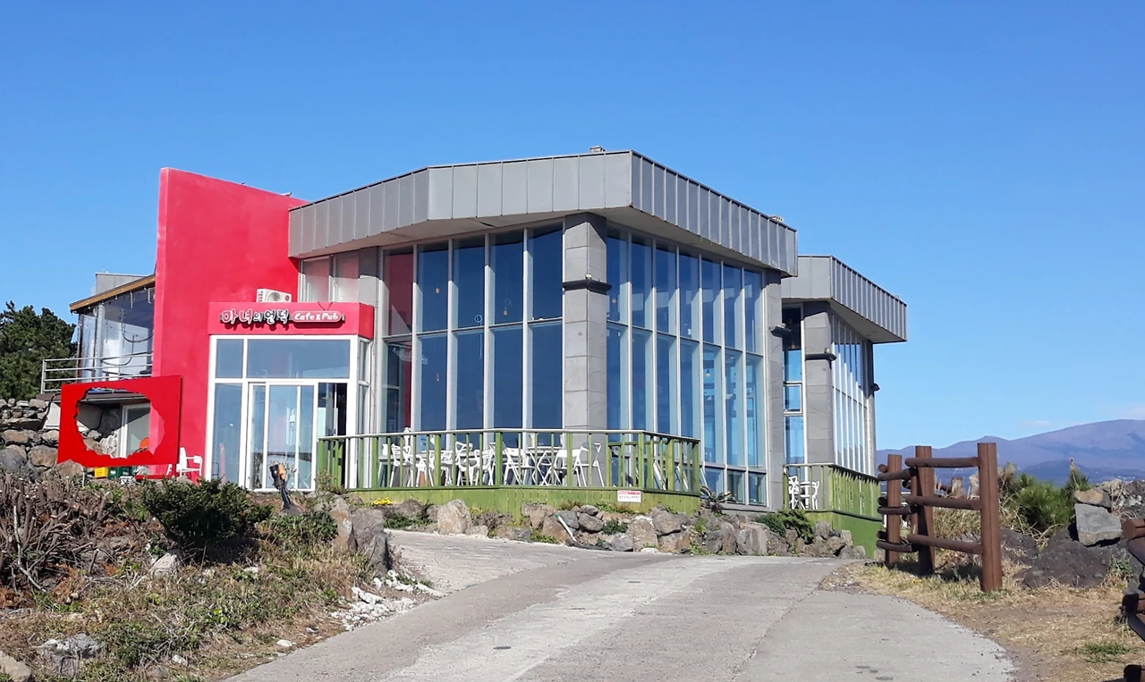 '마녀'촬영지. 언덕에 올라서니 카페 '마녀의 언덕'이 올레꾼을 유혹한다. 액션 영화 '마녀' 촬영지라고 한다. 마녀의 언덕은 조망이 뛰어난 곳이다. 특히 해질녘 노을이 아름다운 곳이다. 반딧불이가 별처럼 반짝이며 수놓은 서귀포 밤바다는 생각만 해도 환상적이다.