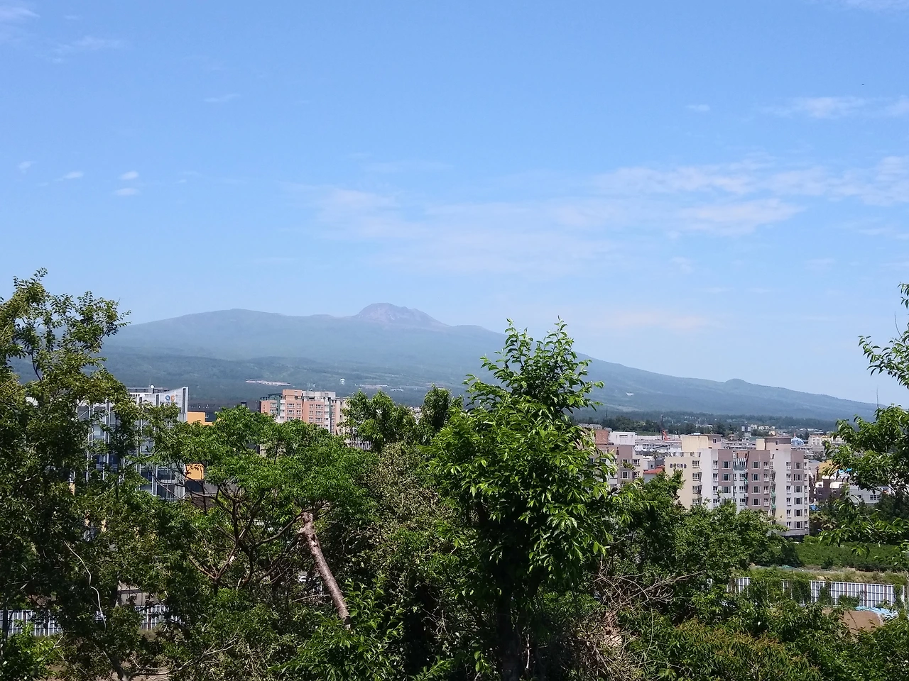 북관설산(北觀雪山). 베릿내오름에서 북쪽으로 보이는 눈 덮인 한라산 모습은 중문10경 중 하나다. 초여름이라 눈은 아니라도 운무에 싸인 한라산도 볼만한 풍경이다. 오늘은 날씨가 맑아 그 왼쪽으로 윗세오름이, 오른쪽으로 사라오름이 위용을 드러낸다.