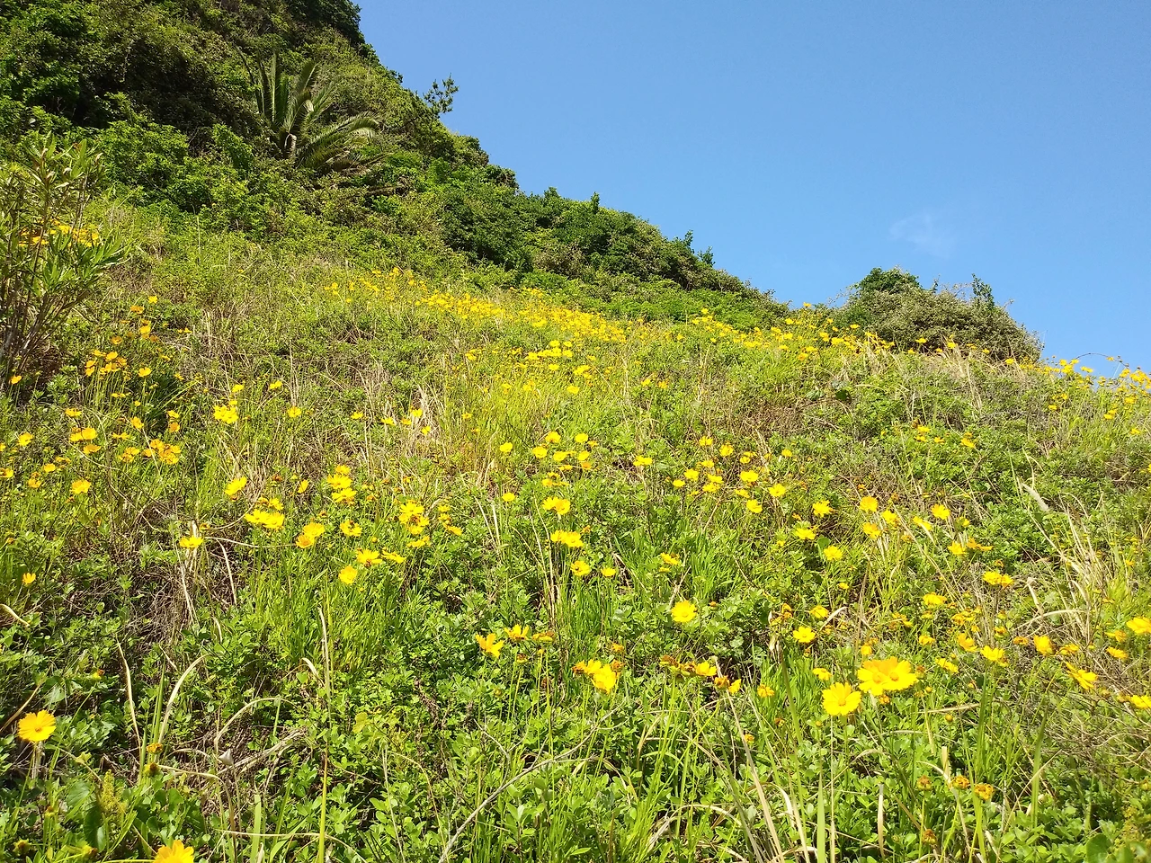 쉬리언덕 아래 해안 사구를 뒤덮은 금계국 군락