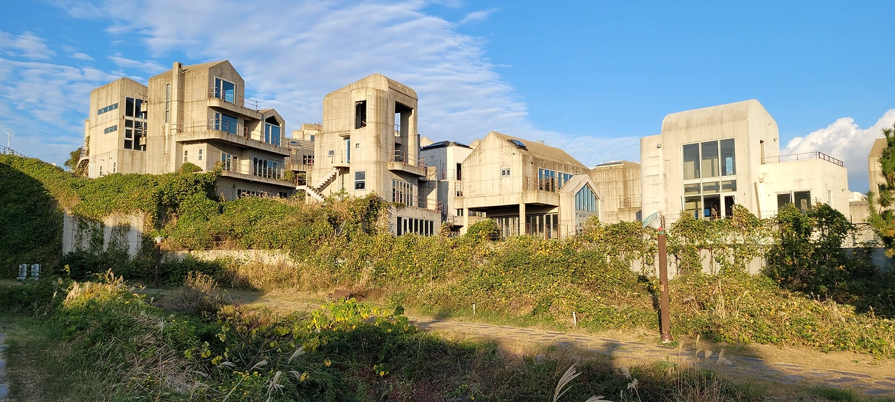 멀리 대왕수천 건너편 언덕 위에 짓다만 건물들이 흉물스럽게 서 있다. 개발사업 승인 무효로 수년째 방치된 서귀포시 '예래휴양형주거단지'이다. 제주 난개발의 현장을 보는 것 같아 씁쓸하다.