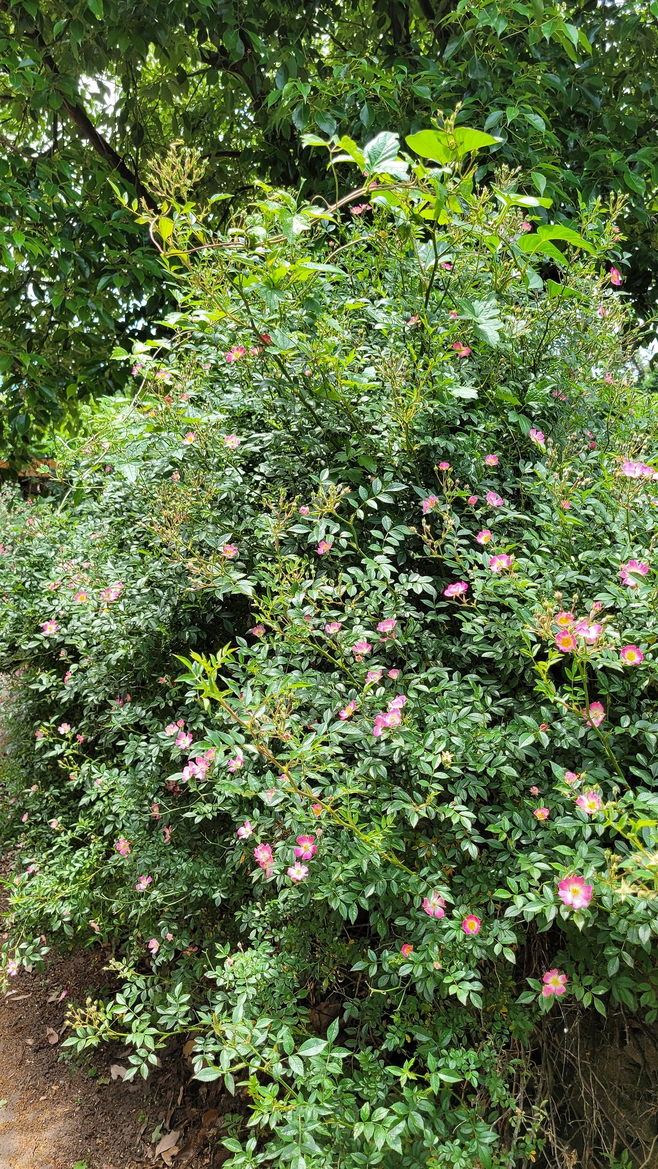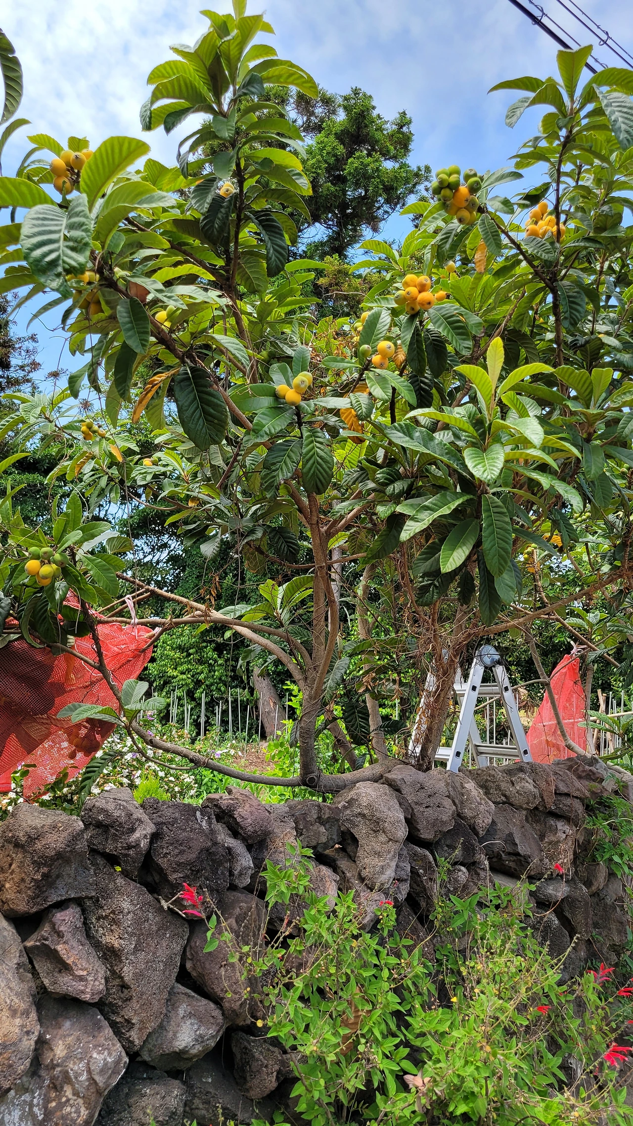 감산리 중산간 마을. 좌측부터 비파, 분홍찔레, 섬초롱꽃