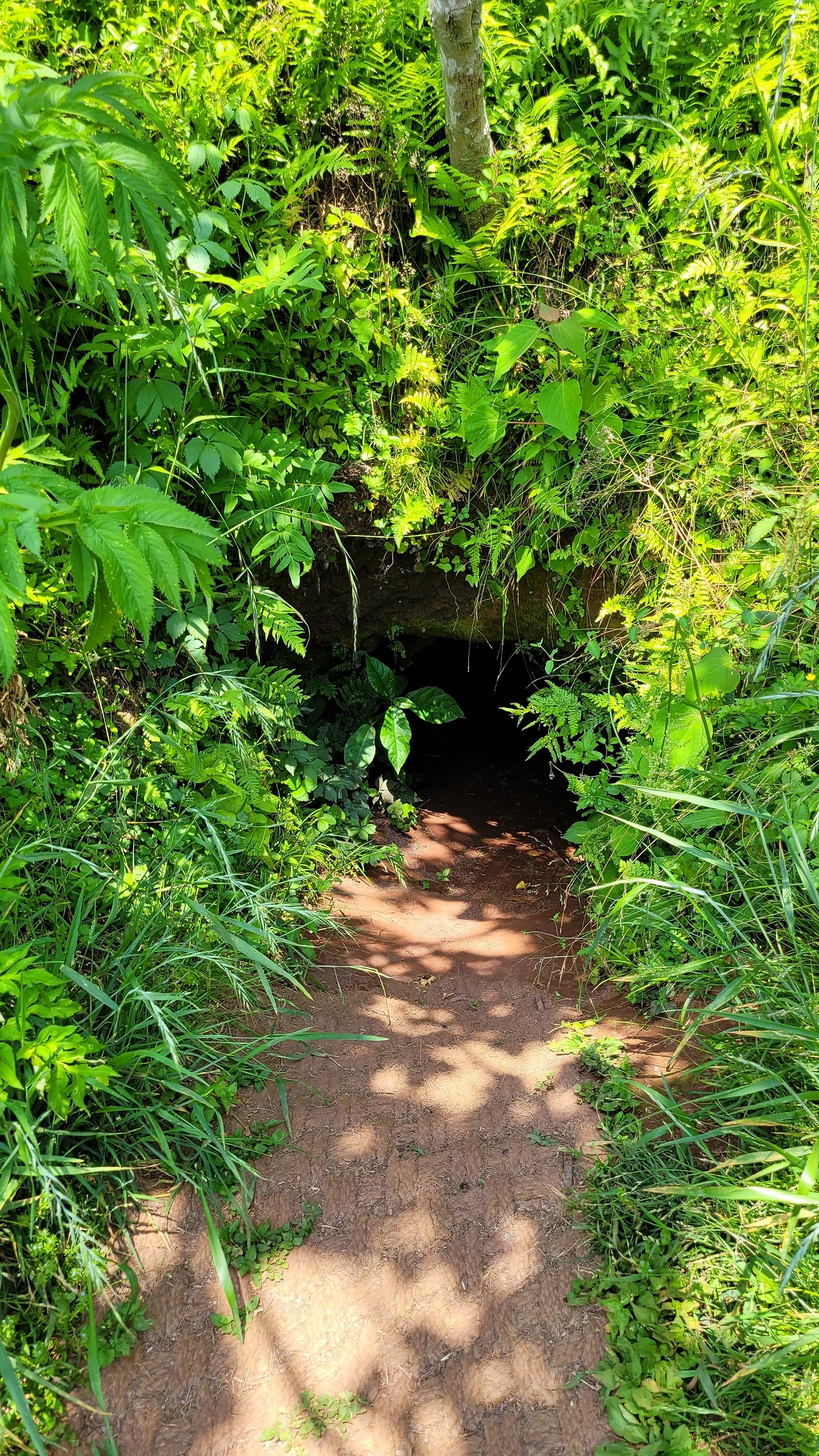 구릿대가 군락을 이루고 있는 곳에 일제가 파놓은 진지동굴이 군데군데 산재해 있다.