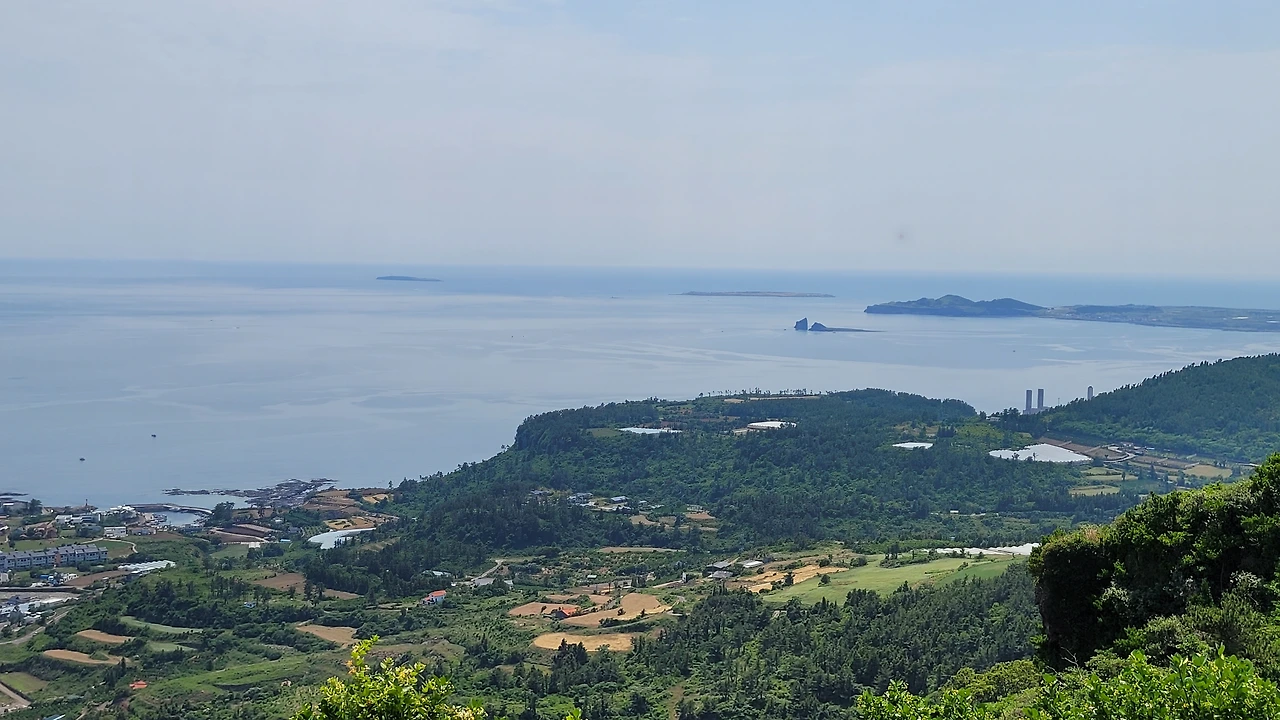 군산오름 전망대에서 본 안덕면 남쪽 바다