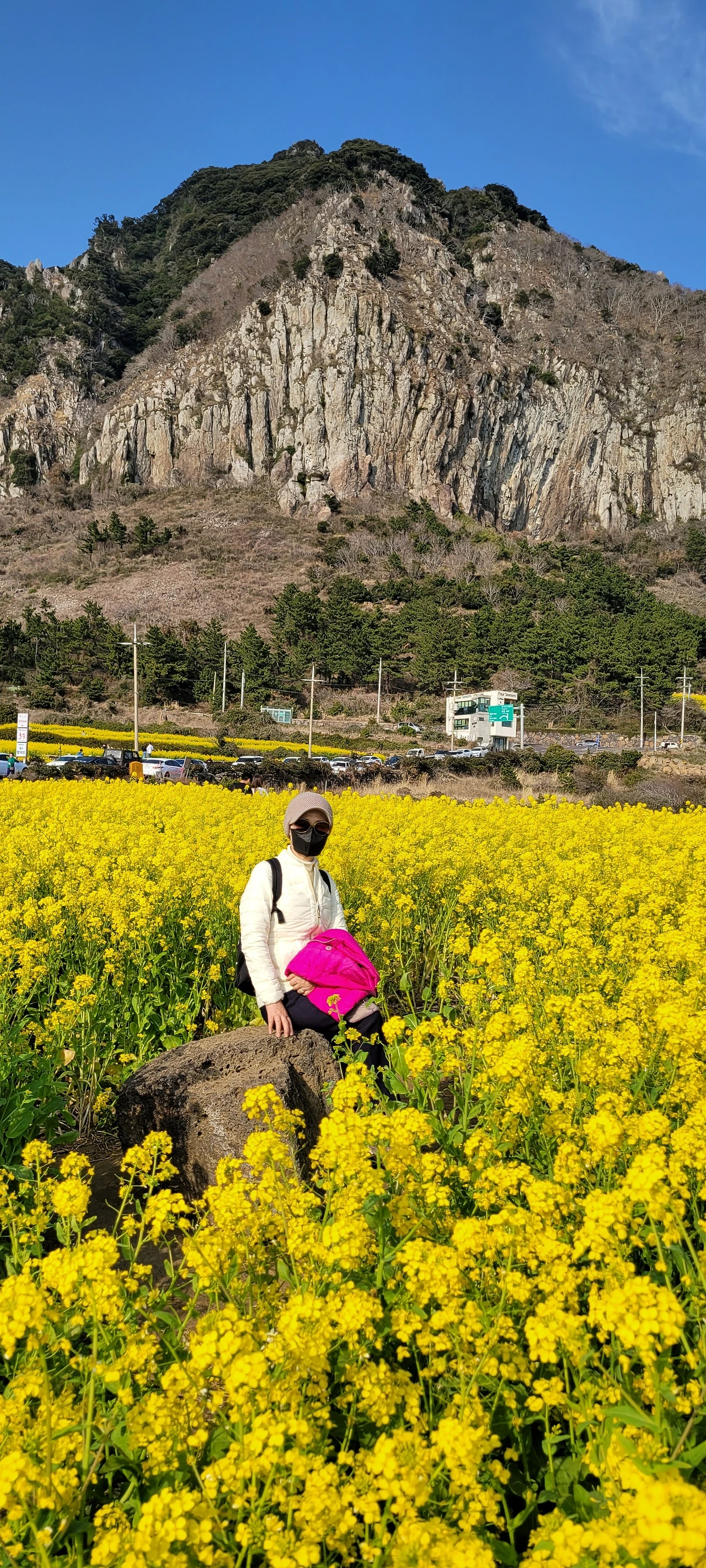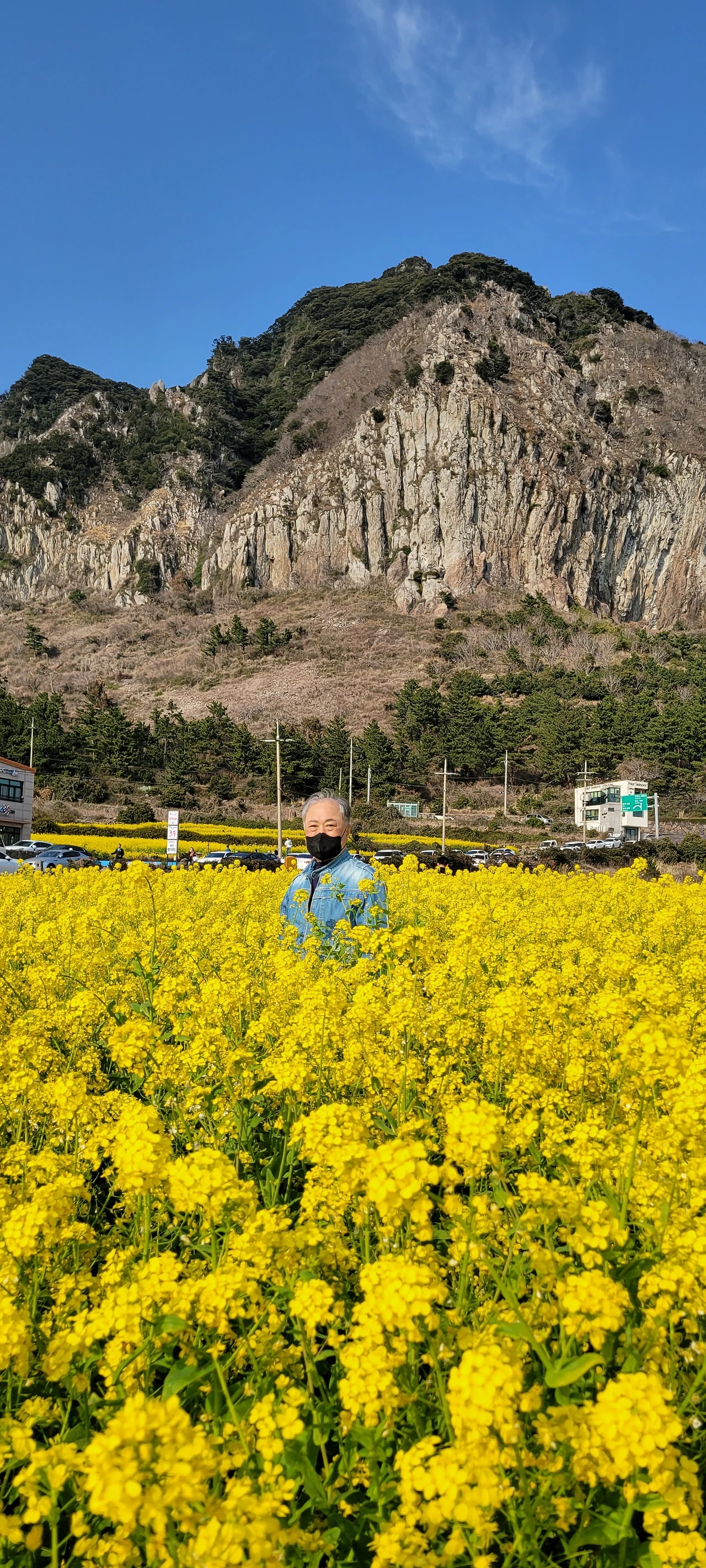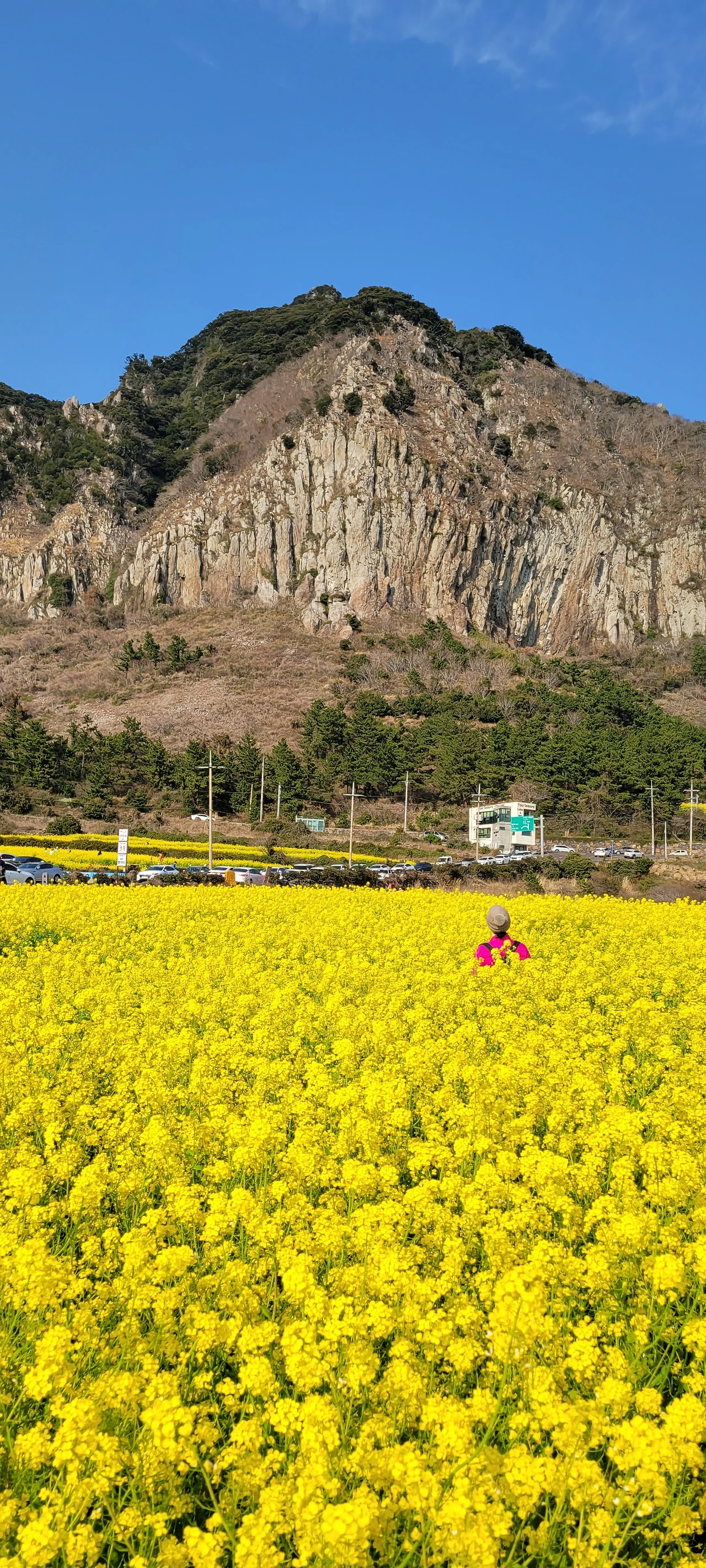 산방산 인근의 유채밭은 사유지로 입장료 1,000원을 내고 들어간다. 유채밭과 산방산, 쪽빛 하늘을 한 컷에 다 넣기 위해 뒤로 뒤로 물러난다. 경계를 살짝 넘었다 다시 들어오니, 유채밭 관리자가 바로 달려온다.