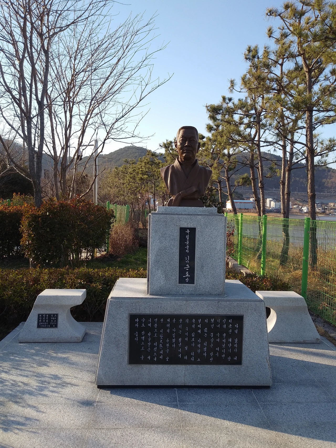 천가 어린이집 옆 샛바람 쉼터에 독립유공자 김도근 상이 세워져 있다.