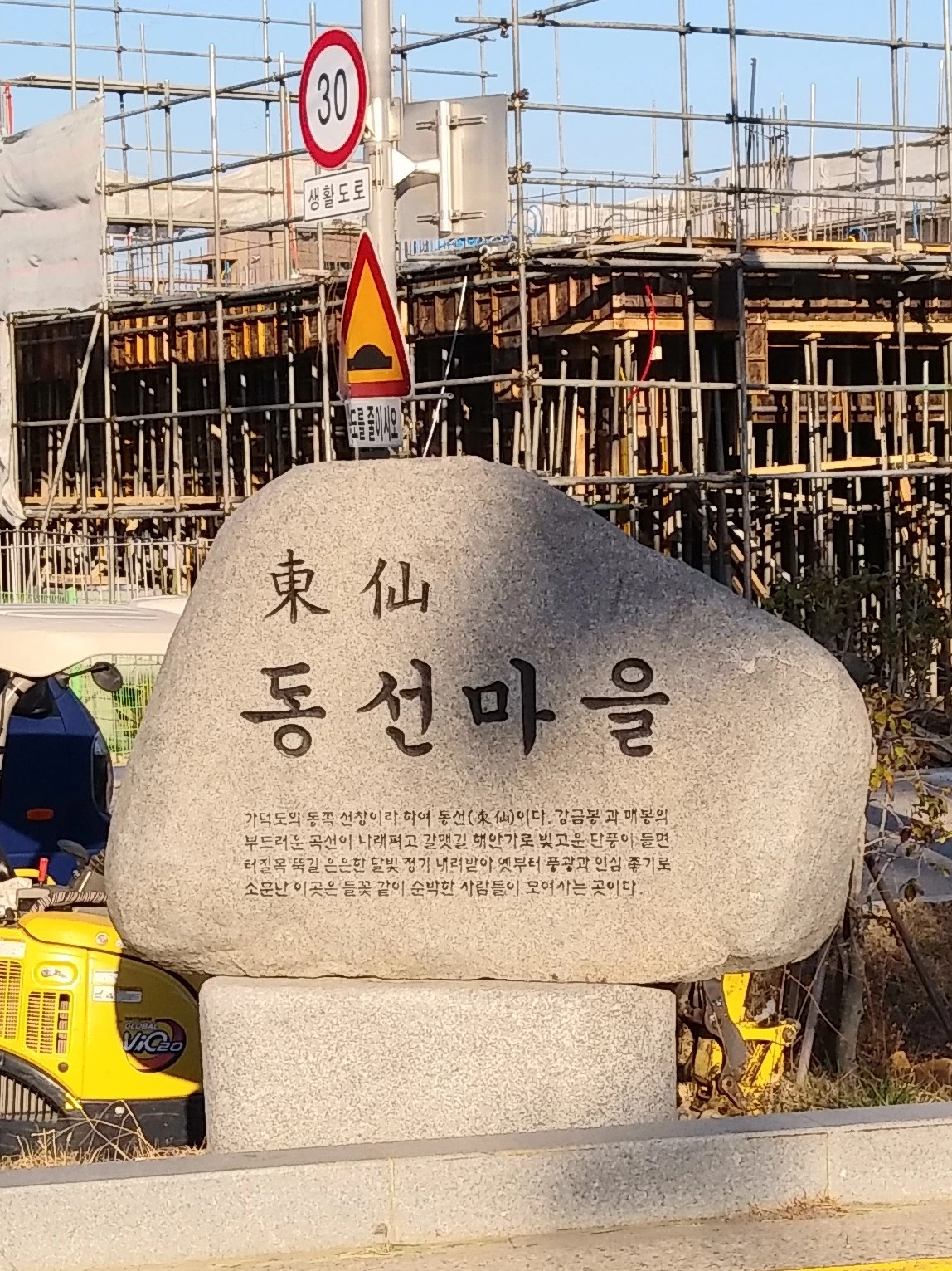 동선마을 버스정류장에서 가덕진 성터를 찾아간다. 차 한 대 겨우 지나가는 좁은 골목길이 거미줄처럼 얽혀있다. 일방통행로를 만들어 겨우 차량을 소통시킨다. 옛 마을의 모습이 온전히 남아있다. 옛 집들 사이로 새로 지은 전원주택들도 드문드문 보인다.
