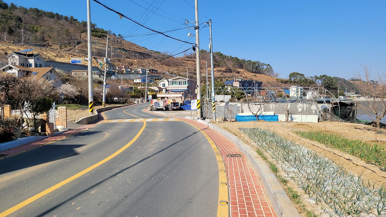 눌차만 바닷가로 내려선다. 외눌마을에서 오는 둘레길과 만나서 동선 방조제로 간다. 해병 주둔지 갈림길에서 동선 새바지 방조제 쪽으로 내려오는 해안가 길과 합쳐진다.