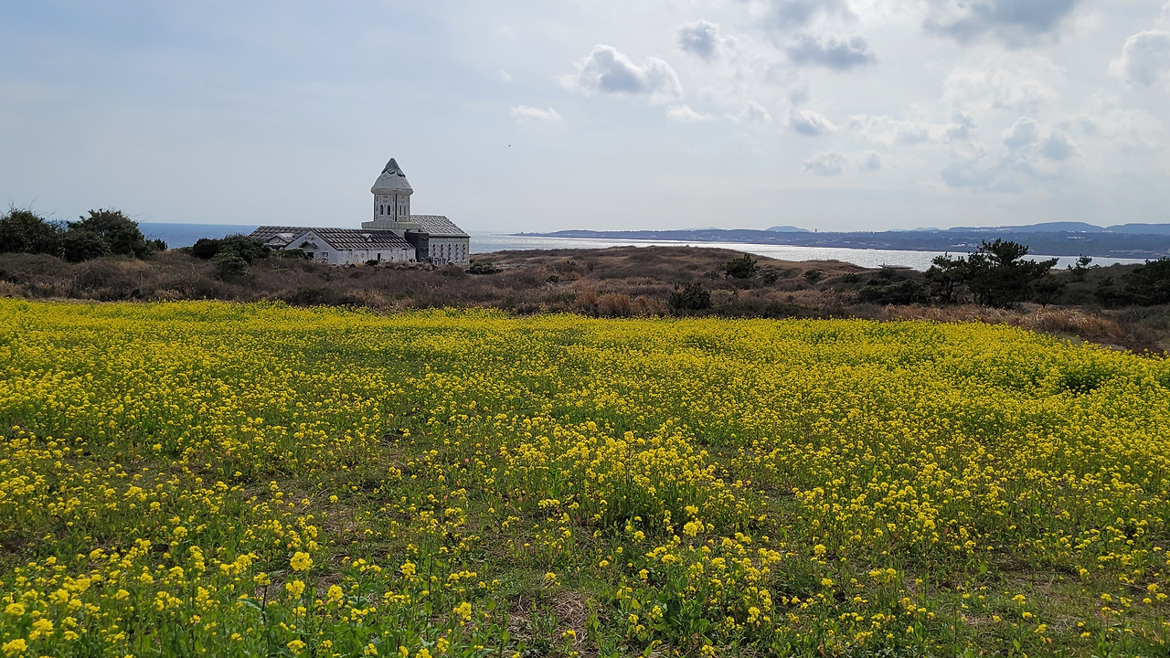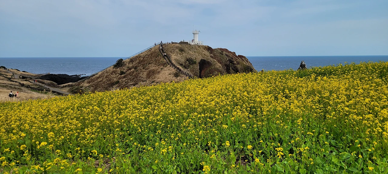 섭지코지는 뛰어난 자연경관을 배경으로 한 유채꽃 명소다.