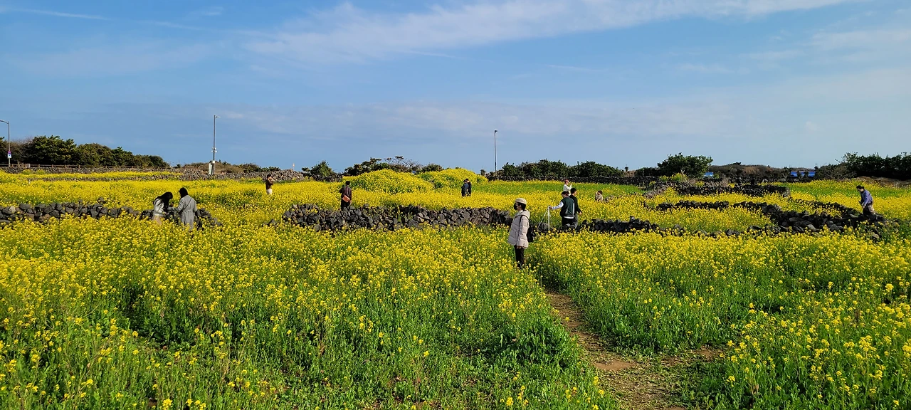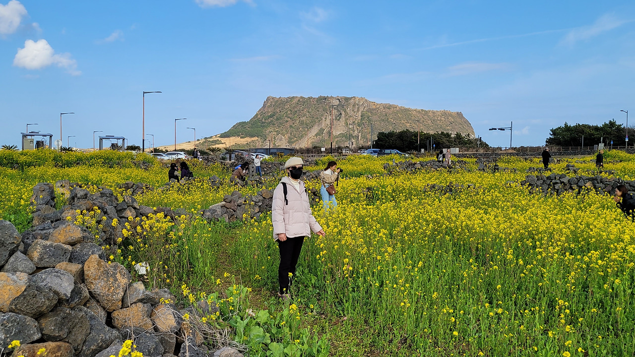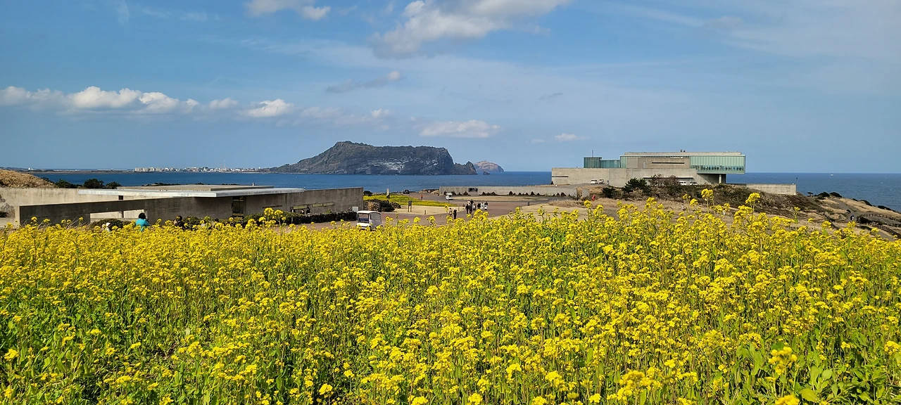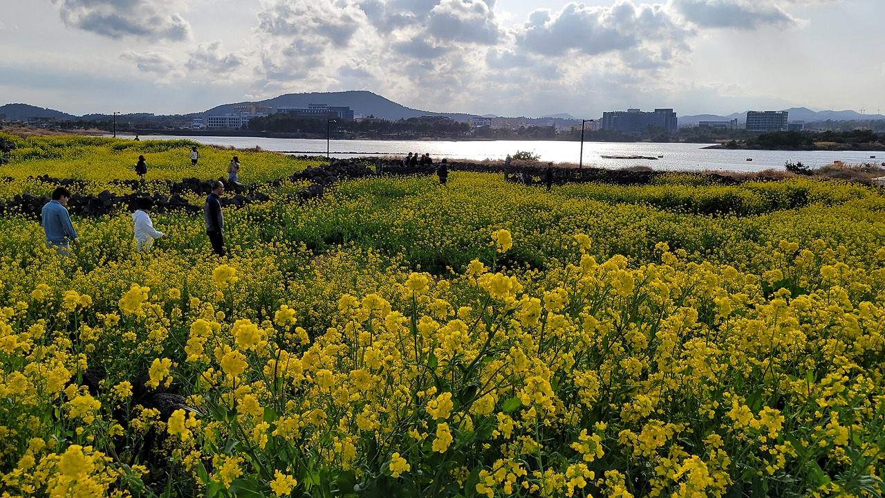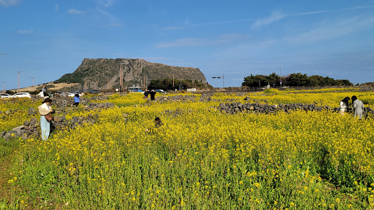 성산일출봉 가까이, 광치기해변 가까이 지루할 틈 없이 핀 유채꽃