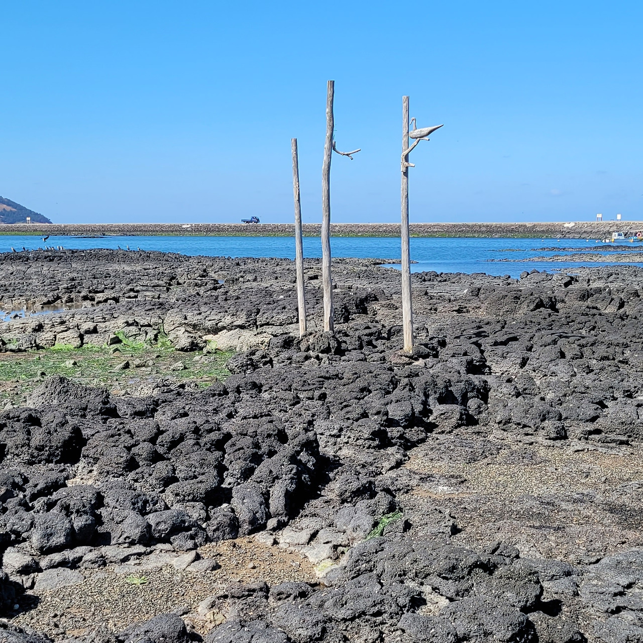 조개잡이 체험장이었던 검은여 해변에는 여러 개의 솟대가 서 있다. 갈매기와 기러기 모양의 나뭇조각이 솟대 위에 앉아 있다. 검은여 위의 솟대는 파란 하늘과 어우러져 독특한 풍경을 연출한다.