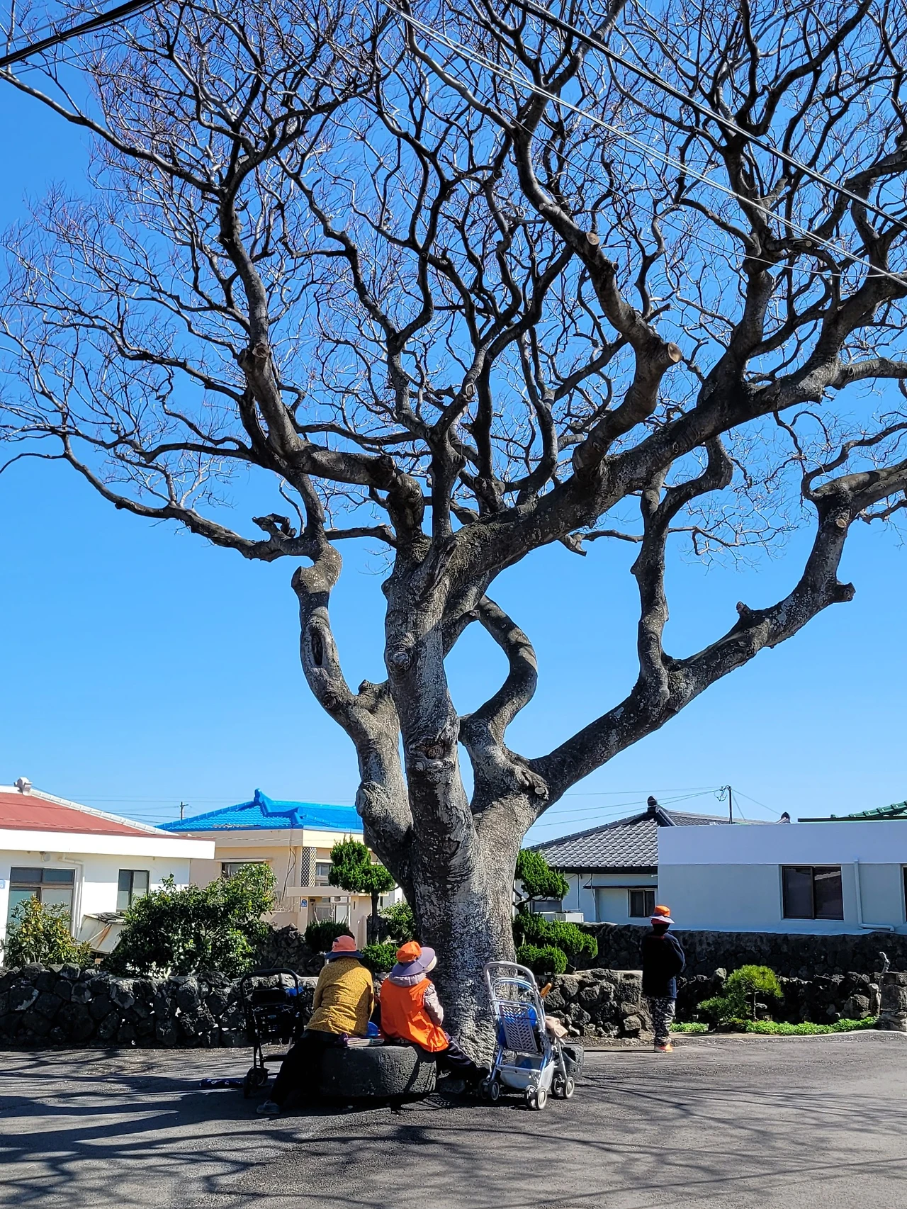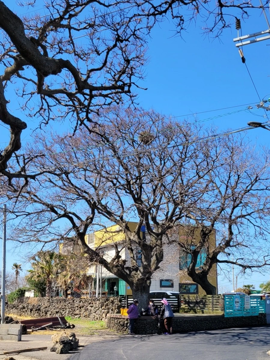 대림리에는 유난히 오래된 팽나무가 많다. 나무 꼭대기에 까치집이 보인다. 여기도 안 노인 몇 분이 모여 있다.