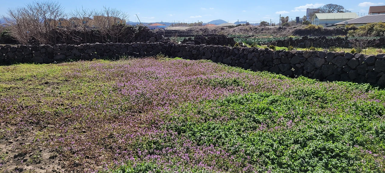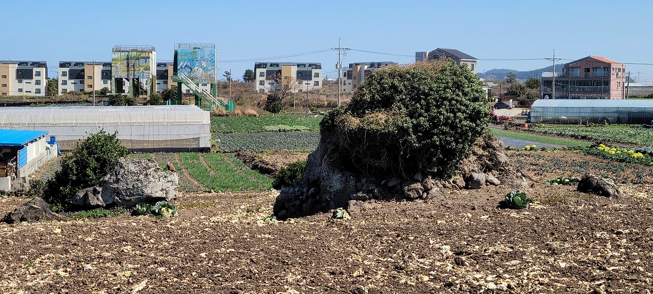 "마을이 모래로 덮여 모래 동산이 되고, '그 모래 동산에 지의류가 자라고 이끼가 자라고, 세월이 지나면서 (짠물을 뒤집어쓰고도) 잘 자라는 순비기나무가 무성해지고 다시 사람이 살기 시작했다'고 알고 있지요. 마을 뒤로 멀리 보이는 산이 한라산이고요. "