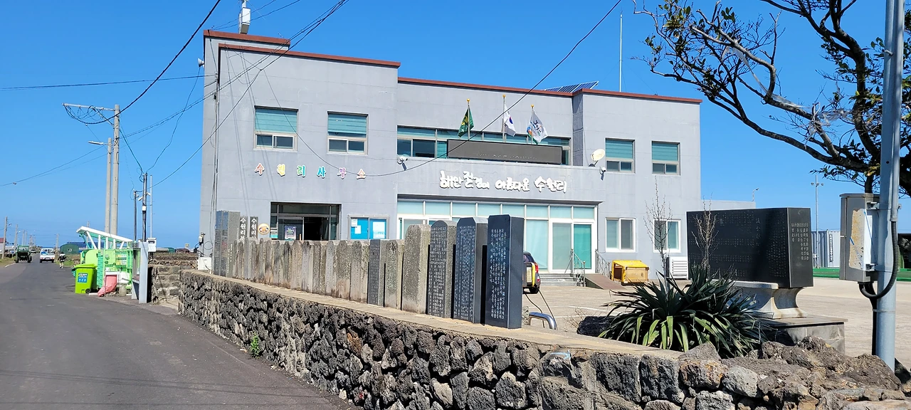 수원리의 옛 이름은 한자어로 (한수리와 함께) 잠수포인 '조물케'다. 잠수포는 물에 잠기는 땅. 식수로 이용했던 큰물, 생이물, 돈지물 등 11개 용천수가 만조가 되면 모두 물에 잠긴다. 그래서 잠수포란 마을 이름이 생겼다고 한다. 그런데 물질하던 해녀들의 사고가 잦아지자 잠수포라는 이름 때문이라고 여긴 마을 사람들은 1882년 이름을 수원리로 바꾼다. 한수리가 떨어져 나간 것은 한참 후의 일이고.