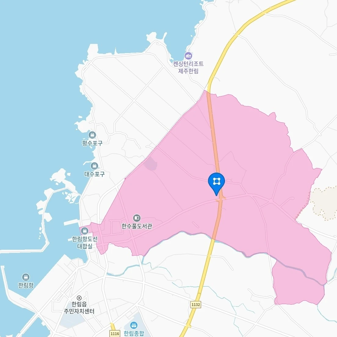 비양도 도항선 선착장은 한림항에 속하지만 원래 대림리포구였을 뿐만 아니라 행정구역도 대림리다. 한림리와 한수리 사이의 폭 80m 정도의 좁은 해변이 대림리 포구다. 제주올레15코스 공식안내소가 있는 '한림항 도선 대합실'도 대림리다. 제주도의 행정구역을 나누는 방식이 특이하다. 일부라도 해안을 접할 수 있도록 해 놓았다. 물론 모두 그런 것은 아니지만 대림리의 경우는 극단적이다.