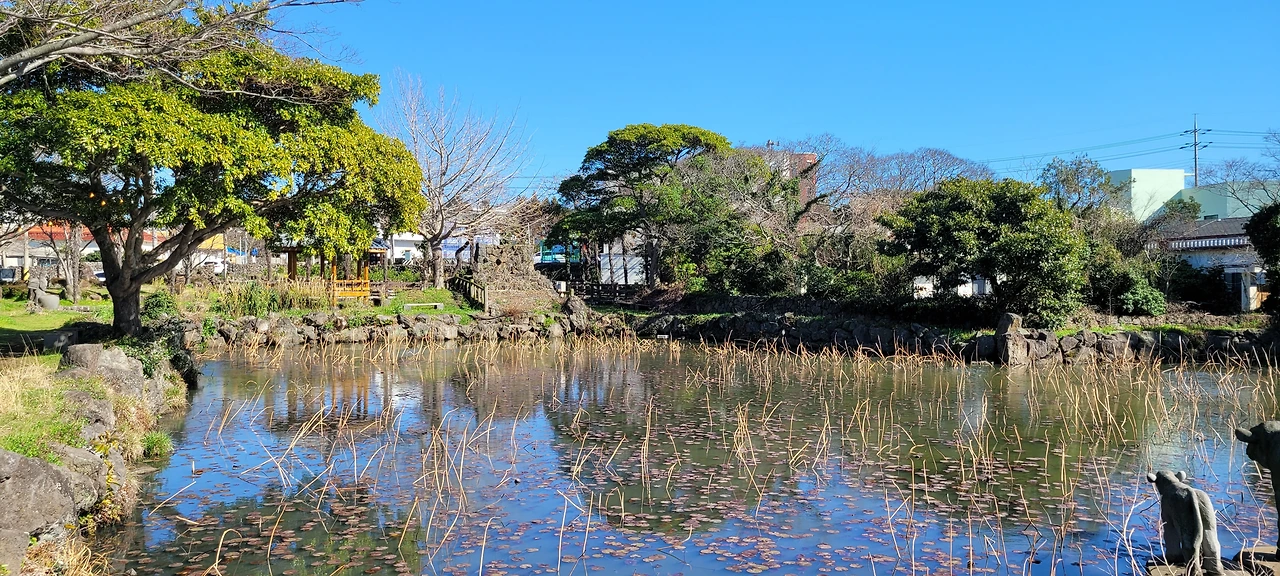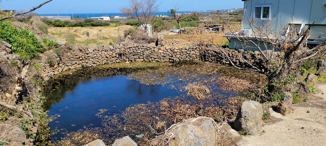 '효도시범마을', '납읍리 선비마을' 등의 문구가 적혀있는 마을 회관을 지나면서 '핫한 동네 애월'의 이미지와 너무 다른 예스러운 분위기에 중압감을 느낀다. 마을 중심의 고씨 열녀비와 1937년도 조성한 ‘새못’도 고전적 납읍리의 고전적 이미지를 상승시킨다. 물오리가 떼를 지어 물 위를 미끄러져 간다. 사진을 찍으려 따라가니 더 멀리 달아난다.
