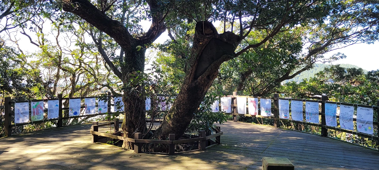 숲속 쉼터에 납읍초등학교 학생들의 시화를 전시하고 있다.