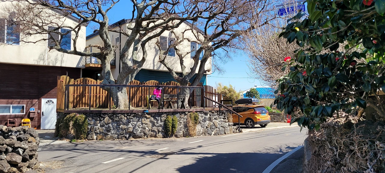 주위에 버드나무가 많았다는 버들못 농로를 지나간다. 천덕로 큰 길가에서 납읍으로 이어지는 기다란 숲길인 ‘언거니동산’을 내려선다. 옛 동네 ‘둥뎅이’에는 펜션, 게스트하우스, 음식점 등이 보인다.
