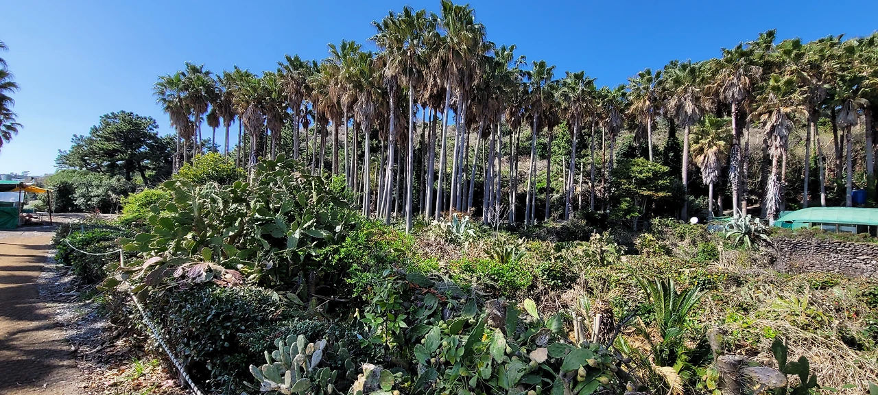 윗세오름에서부터 뻗어 내린 산세는 망팥오름에 이른다. 망밭 앞의 바닷가는 야자수동산이다. 늘씬한 키의 야자수와 선인장을 심어 아열대 식물원과 같은 수모르소공원을 조성해 놓았다. 코로나 팬더믹으로 문을 닫았던 속골 휴게소가 다시 영업을 하고 있다. 올레꾼들이 우도 땅콩 막걸리로 목을 축이고 있다.