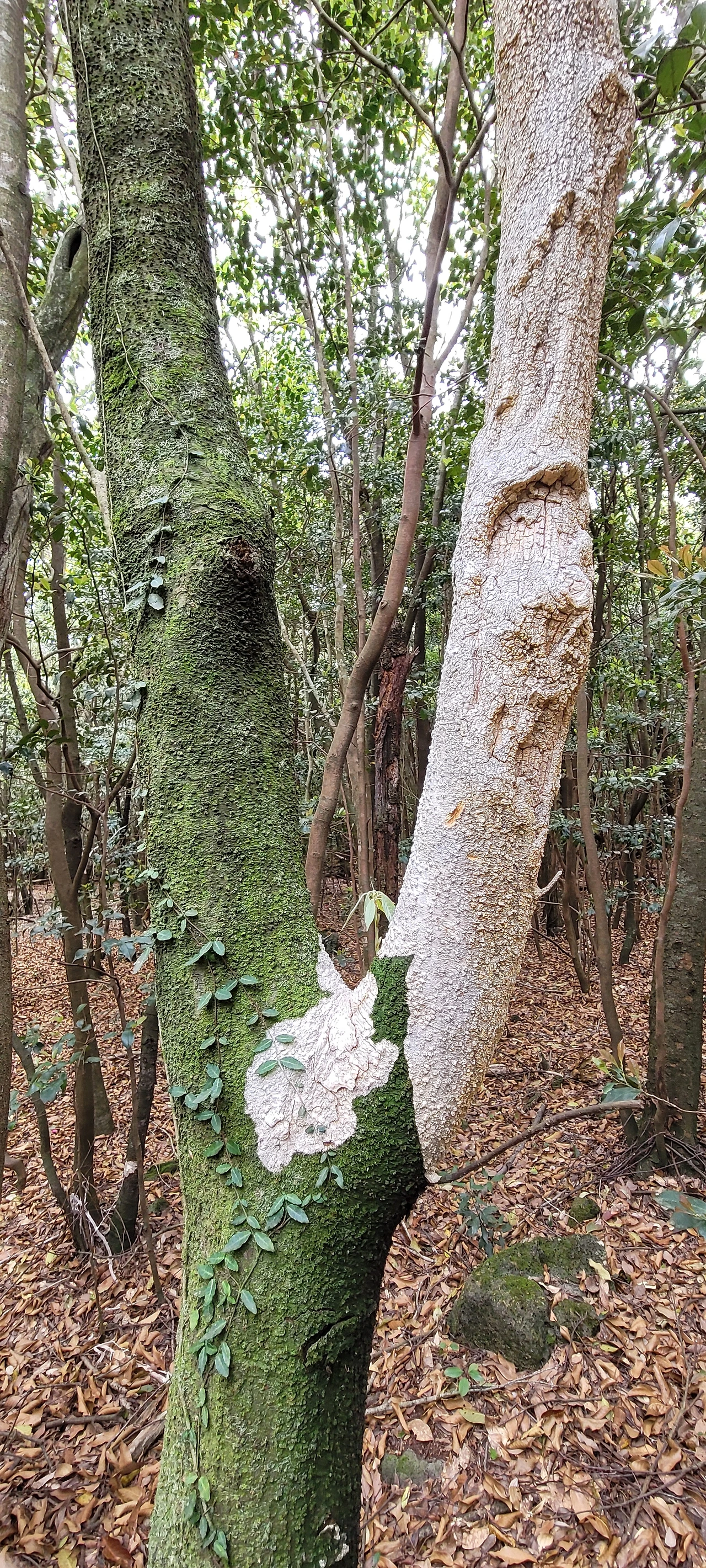 스스로 광합성을 할 수 없는 지의류가 하얀 페인트를 칠한 것처럼 나무 둥치를 덮어도 함께 도우며 살아간다. 이끼가 귀찮게 굴고 콩짜개덩굴이 타고 올라도 사기꾼이라 욕하지 않는다. 참나무도, 삼나무도, 굴거리나무도, 참식나무도, 소나무도, 동백나무도, 고사리도, 덩굴식물도, 이끼도, 지의류도 더불어 살아간다.
