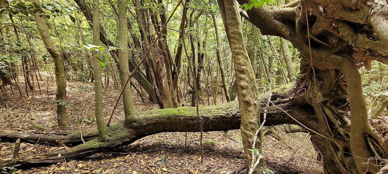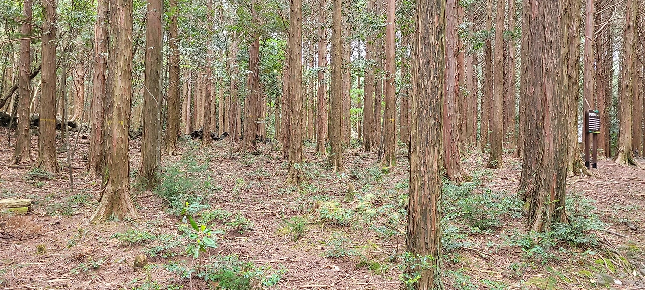 처음부터 천연림이었는지 식생 정비를 하고 있는지, 삼나무 비중이 높지만 혼합림이다. 다양한 식생이 쭉쭉 뻗은 잘 생긴 삼나무와 건전한 경쟁을 하면서 서로 의지한다. 넘어졌다고 괄시하지 않는다. 압수수색도 없다. 조리돌림 하여 퇴출시키려 들지도 않는다.