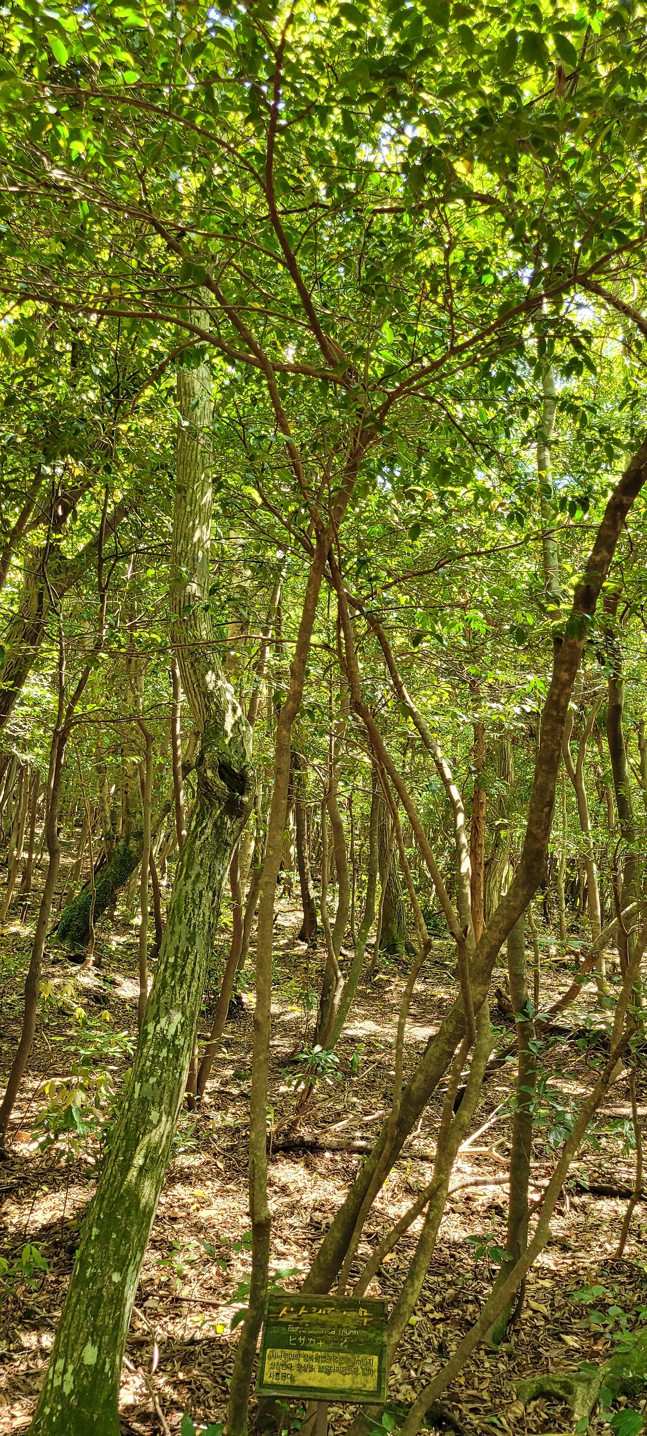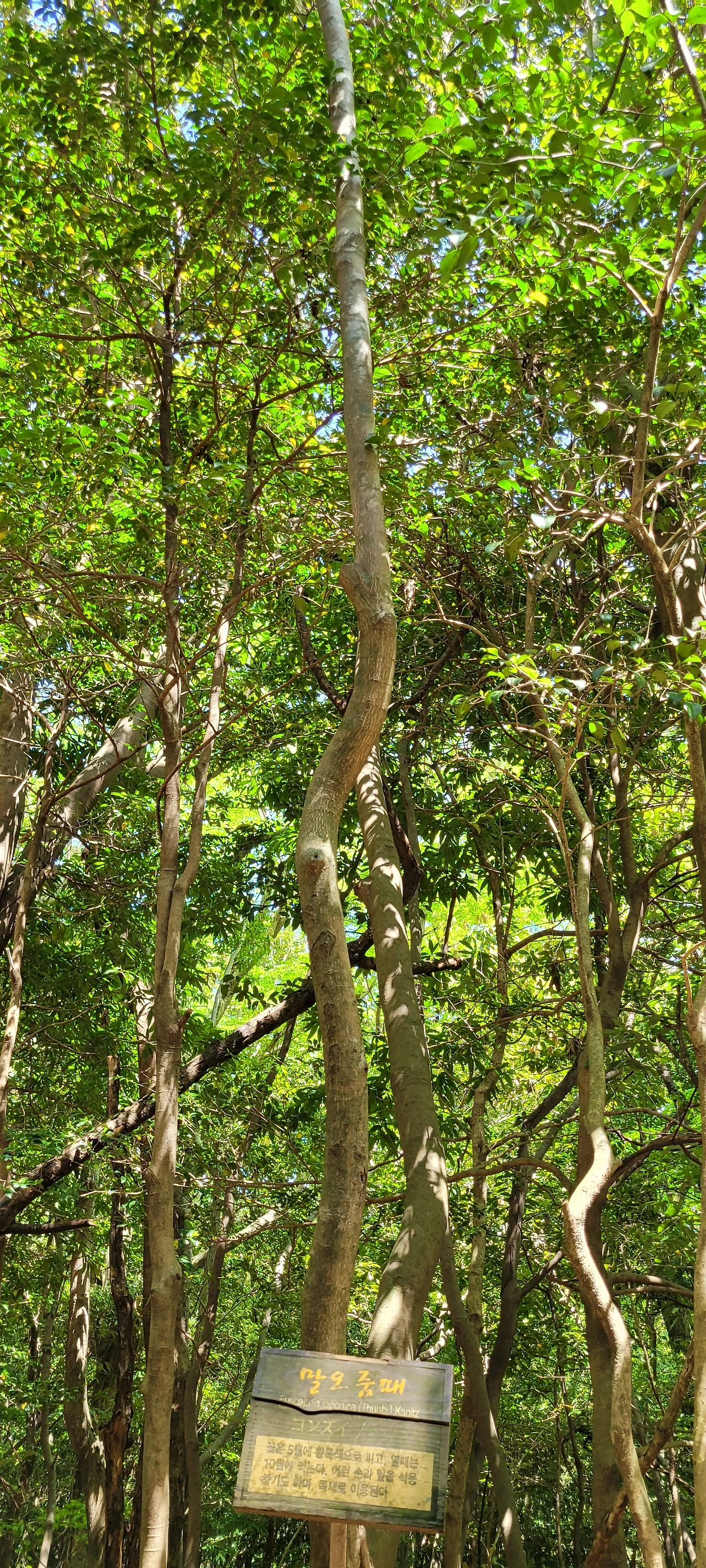 탐방로를 들어서자마자 활엽수 숲이 하늘을 가린다. 소나무, 참나무, 굴거리나무, 음지와 양지 가리지 않고 모두에서 잘 자라는 말오줌때가 우리를 맞이한다.