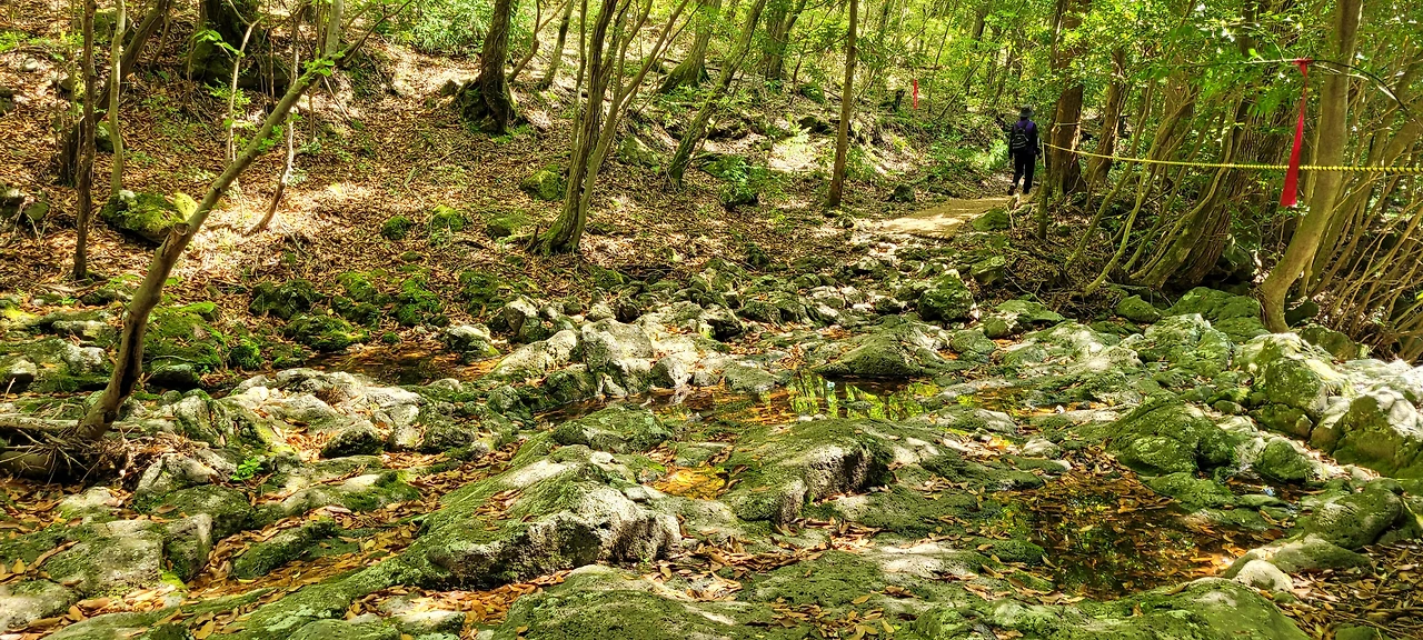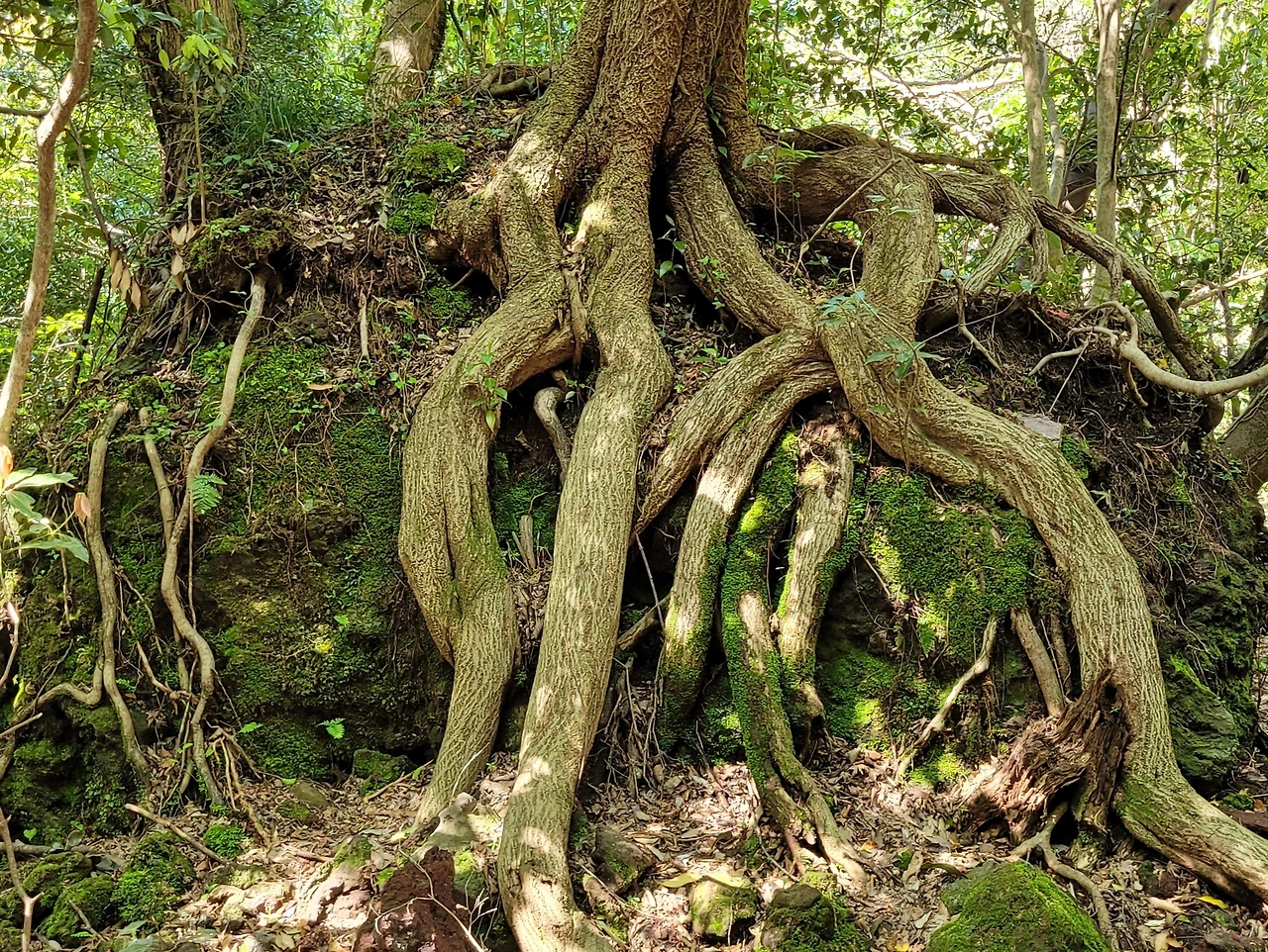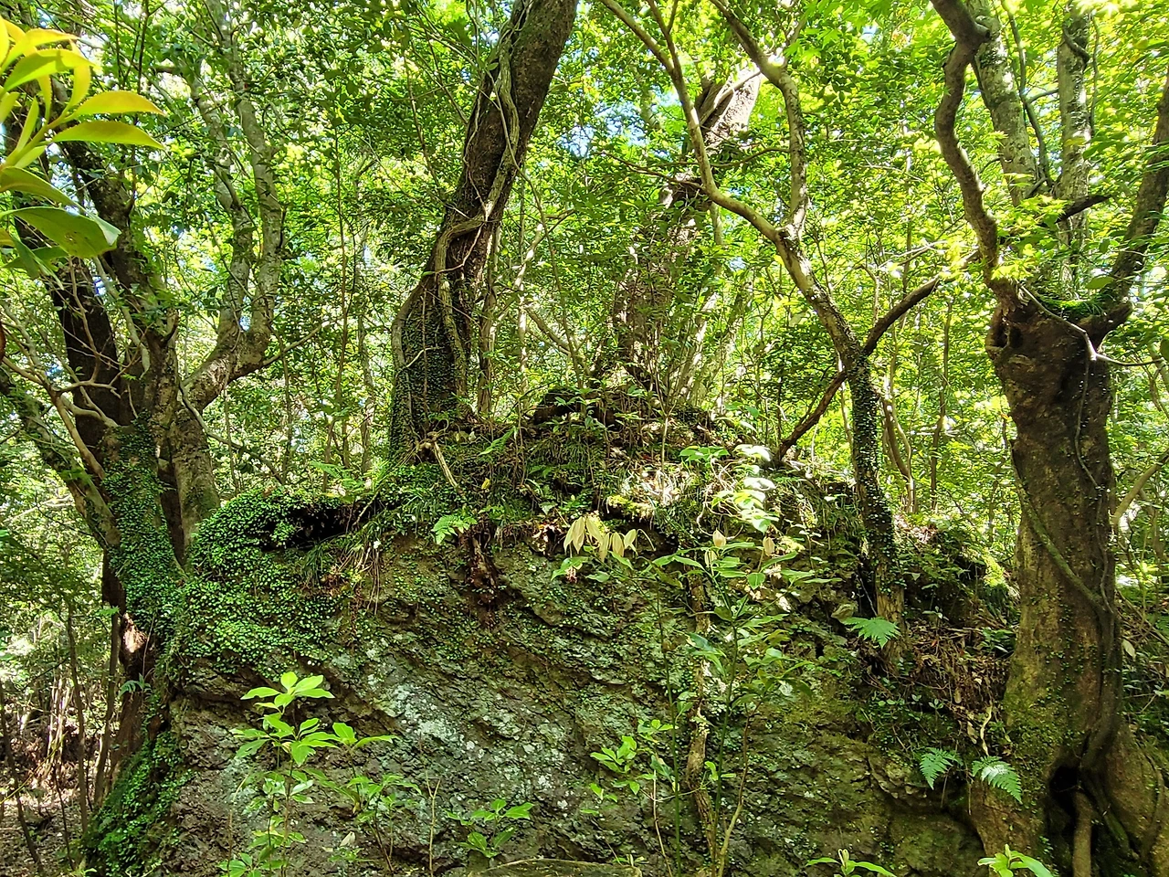 참식나무와 상수리나무를 덩굴식물이 오른쪽 감기를 하며 타고 오른다. 천남성, 제주조릿대, 고사리도 군락을 이루고 자란다.