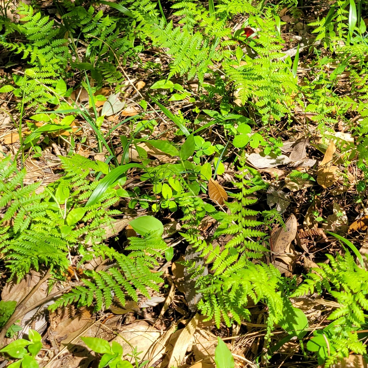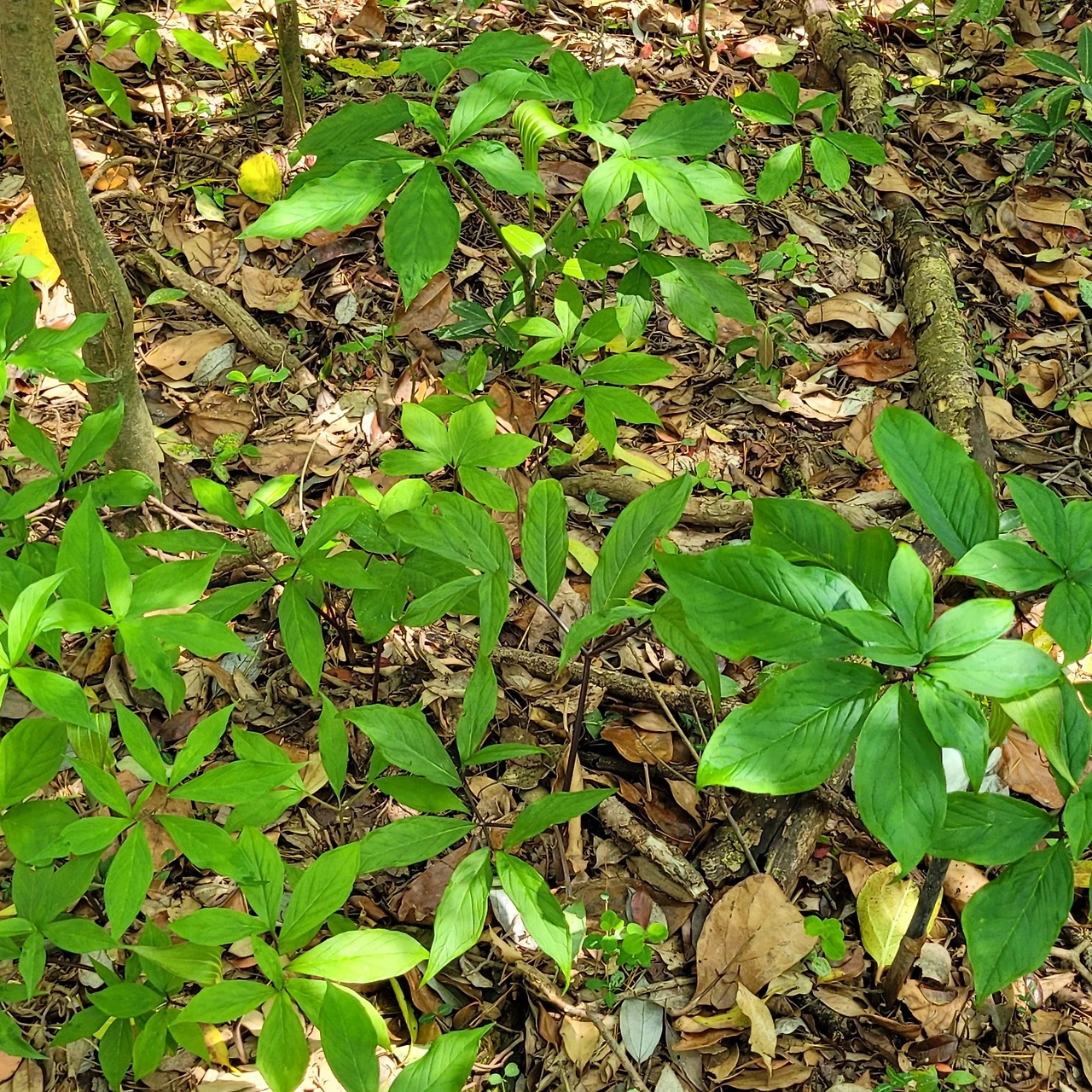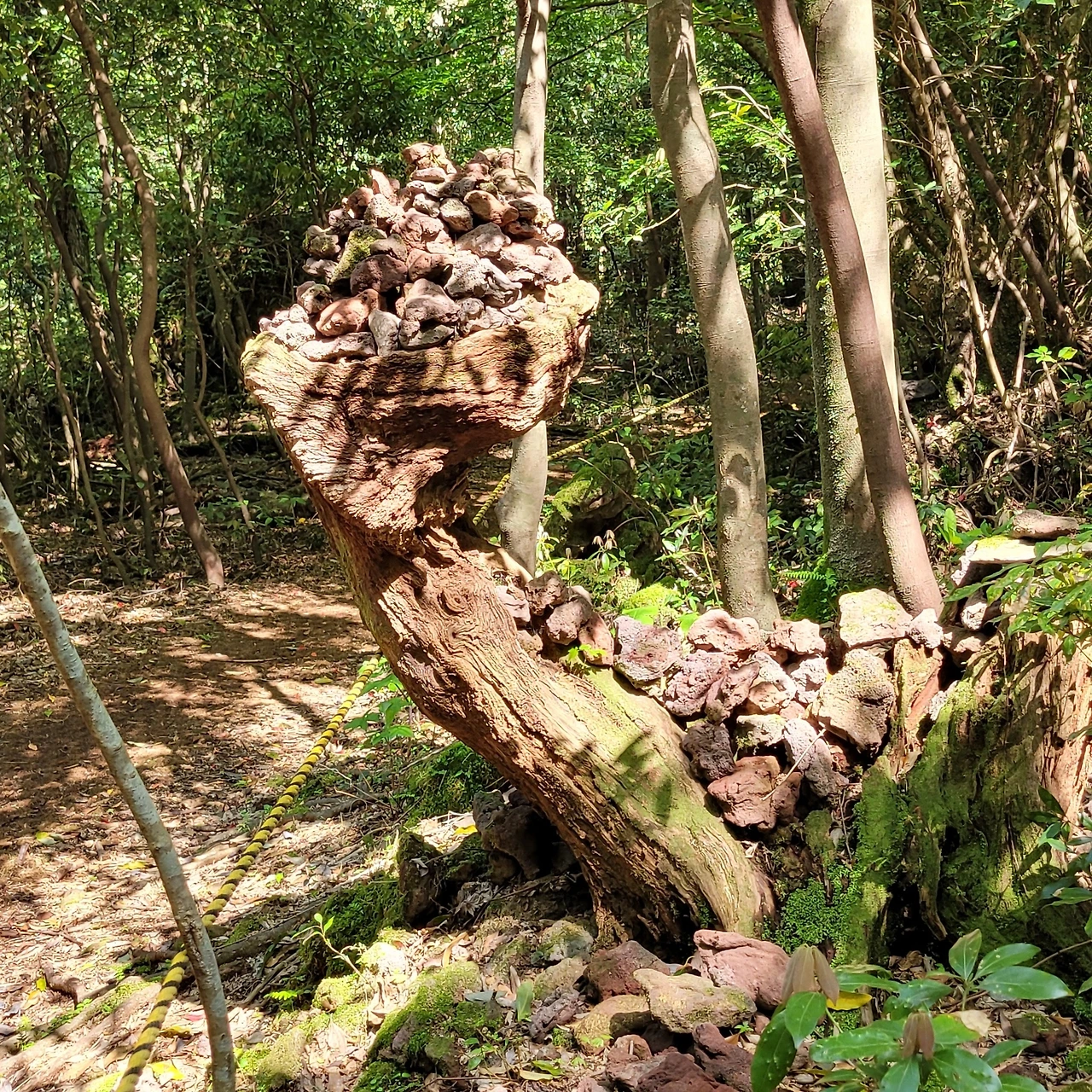 참식나무와 상수리나무를 덩굴식물이 오른쪽 감기를 하며 타고 오른다. 천남성, 제주조릿대, 고사리도 군락을 이루고 자란다.