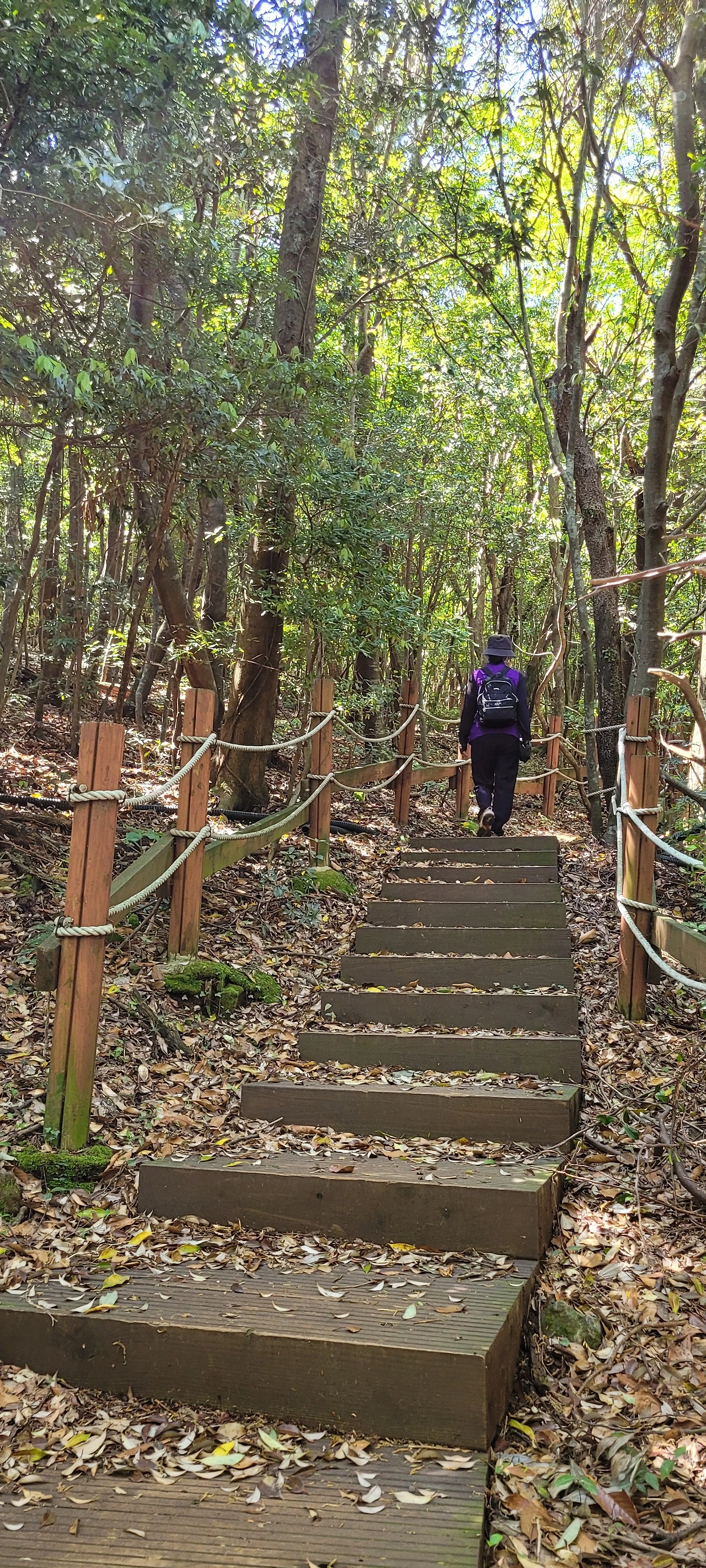 우리는 처음 만나는 위치 안내판에서 왼쪽 나무계단을 오른다. 야자 매트와 나무 계단이 번갈아 나타난다. 탐방로는 경사가 급하지 않아 걷기에 좋다.