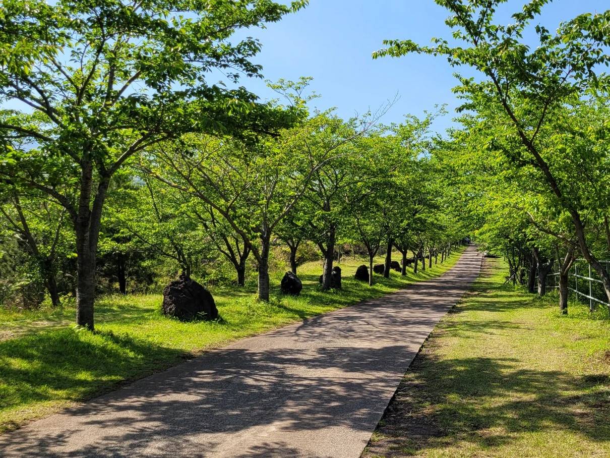 신례 공동목장 사이로 난 (서성로에서 '이승악 입구'까지의) 진입로 2.5km는 한라산 중산간에 숨겨놓은 신례리 벚꽃 명소다.