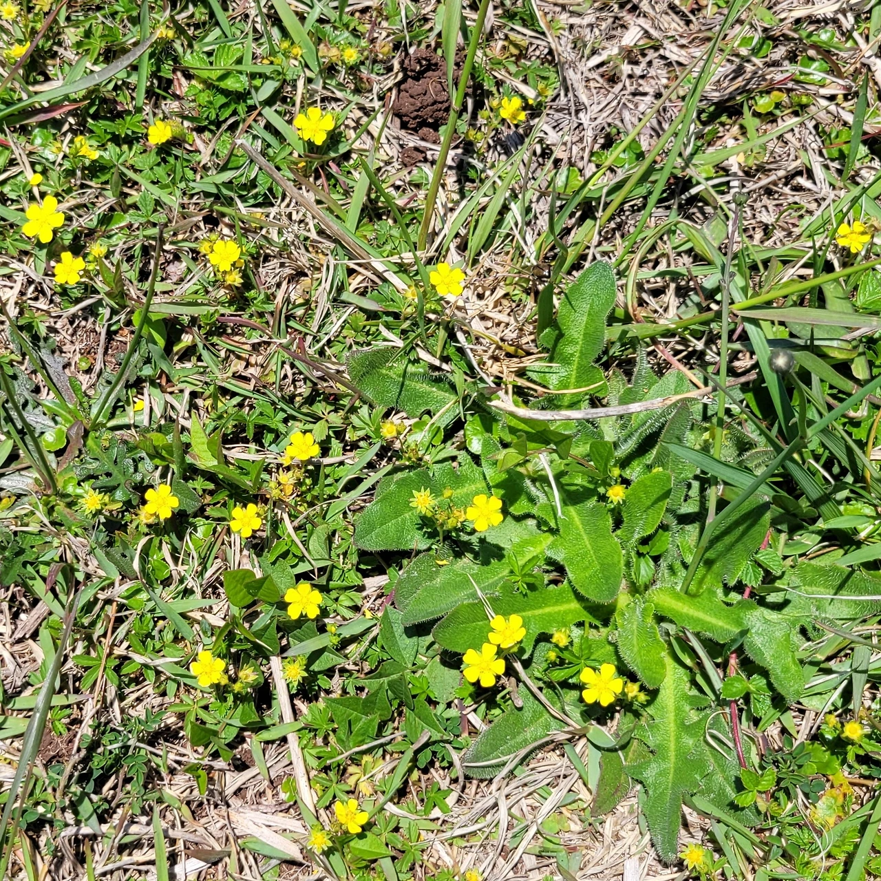 큰구슬붕이, 양지꽃, 애기수영, 미나리아재비(왼쪽 위에서 시계 침 도는 방향으로)