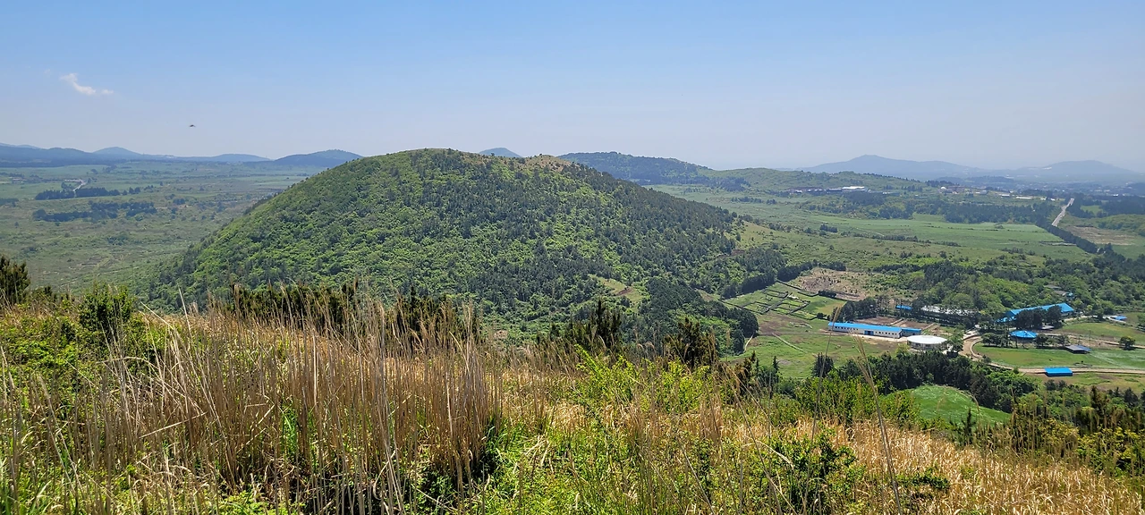 당오름 사이의 골짜기는 목장이다. 이곳으로 서귀포시와 제주시의 경계선이 지나간다.