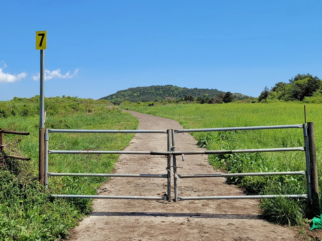 사유지라 탐방 안내판이 없다. 탐방로도 제대로 되어 있지 않다. 오름을 향해 똑바로 난 콘크리트 진입로는 잠깐이다. 빼곡히 들어선 산담을 두른 묘지를 만나면 길이 희미해진다.